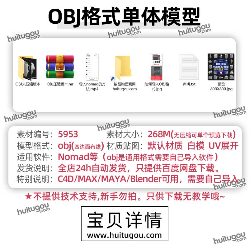 桌子椅子凳子沙发柜子床家具单体3D模型OBJ白模nomad建模设计素材