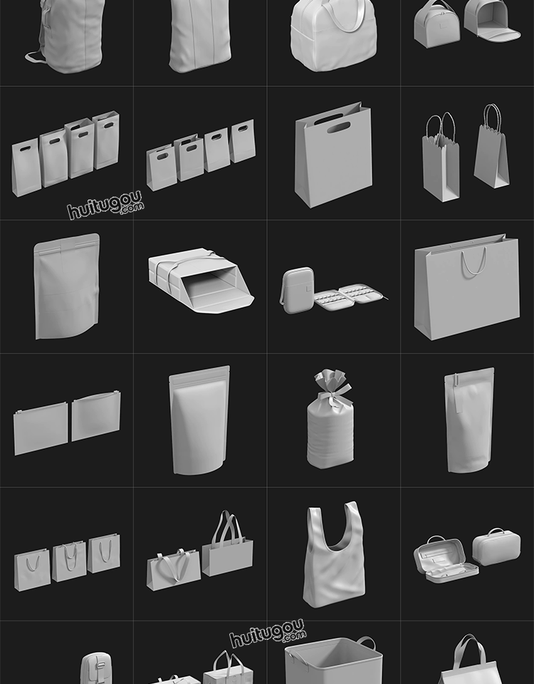 包装袋3D模型食品袋手提袋购物袋子零食袋工具包OBJ素材nomad可用