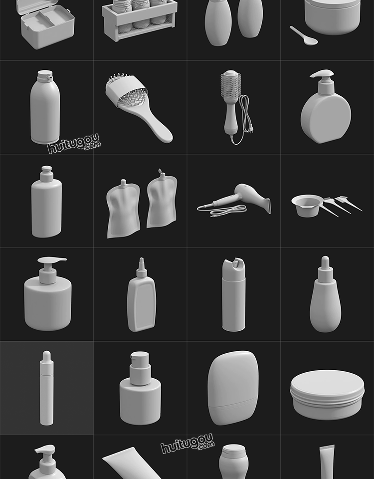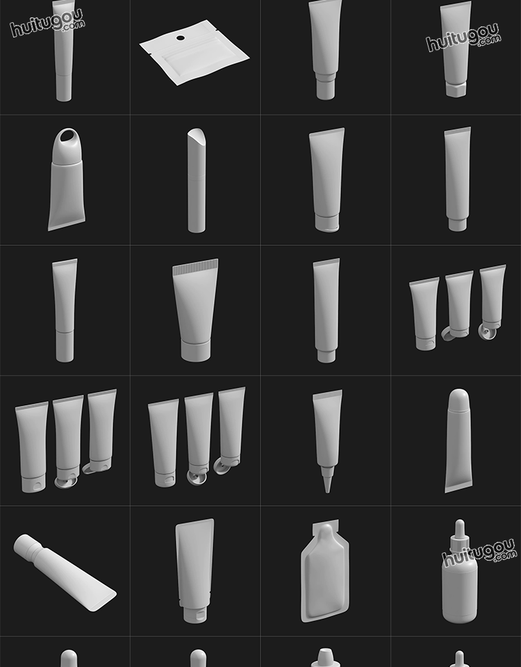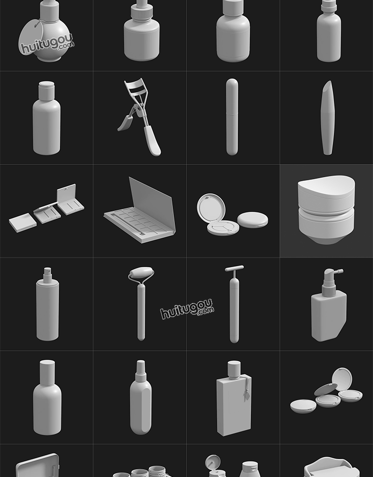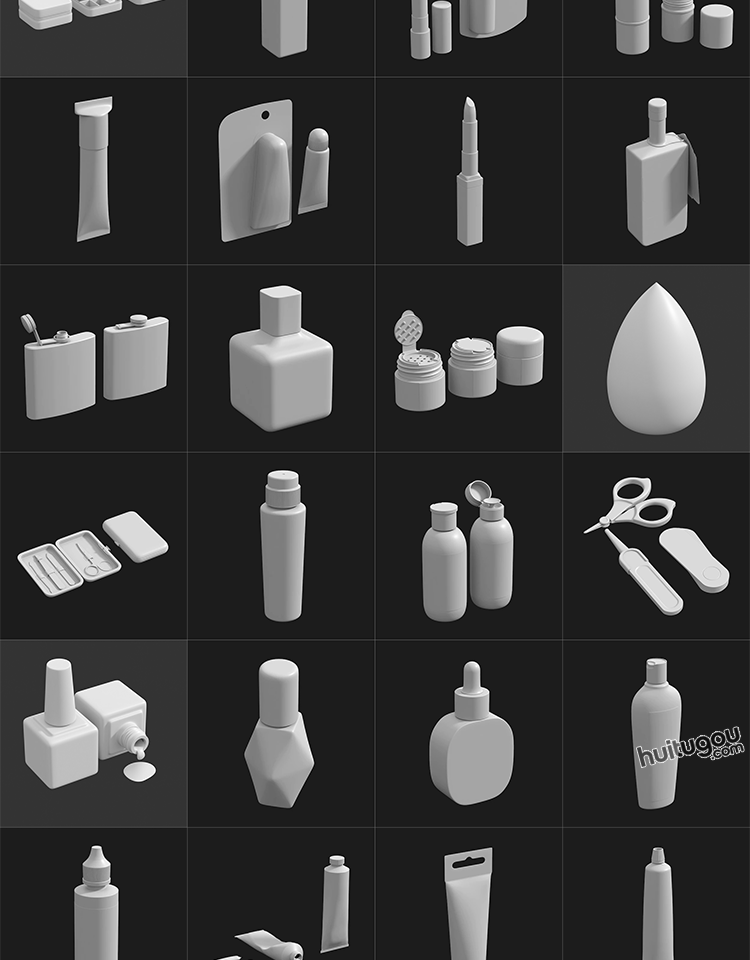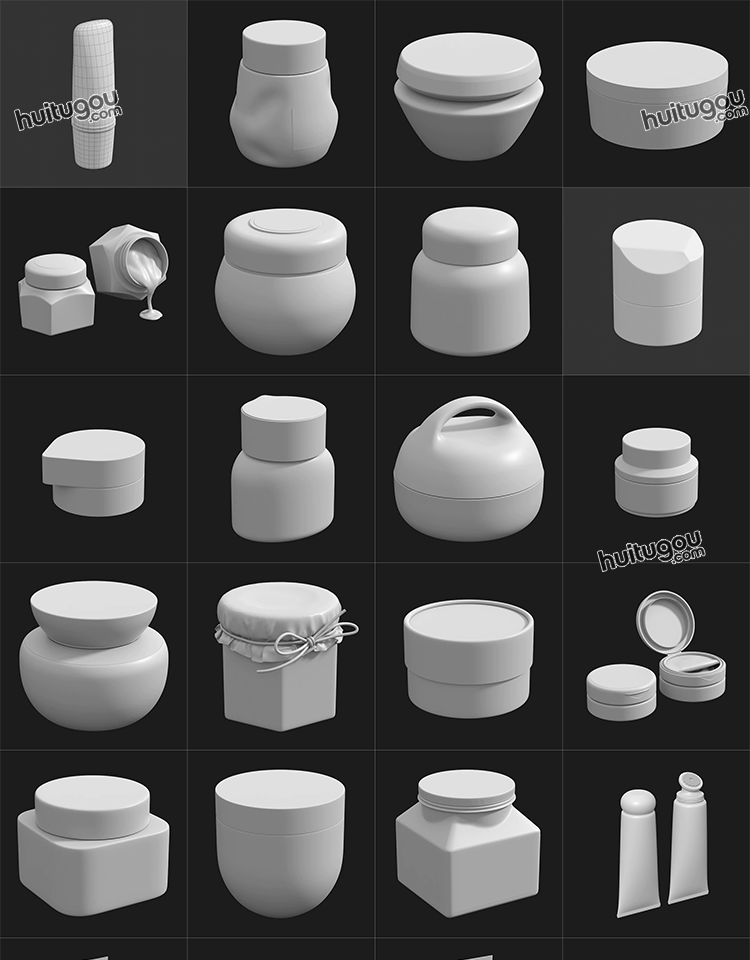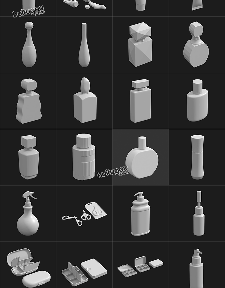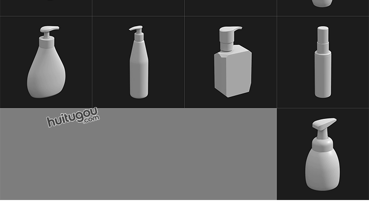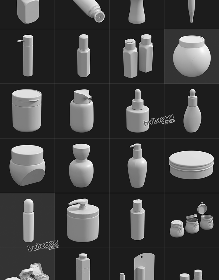 MAYA化妆品瓶子软膏洗发水香水瓶3D模型C4D白模OBJ建模ZB雕刻素材