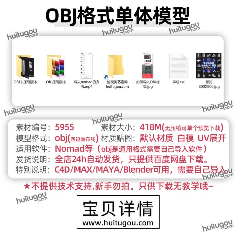 化妆品瓶罐3D模型护肤品瓶子洗面奶包装收纳盒香水瓶OBJ白模nomad