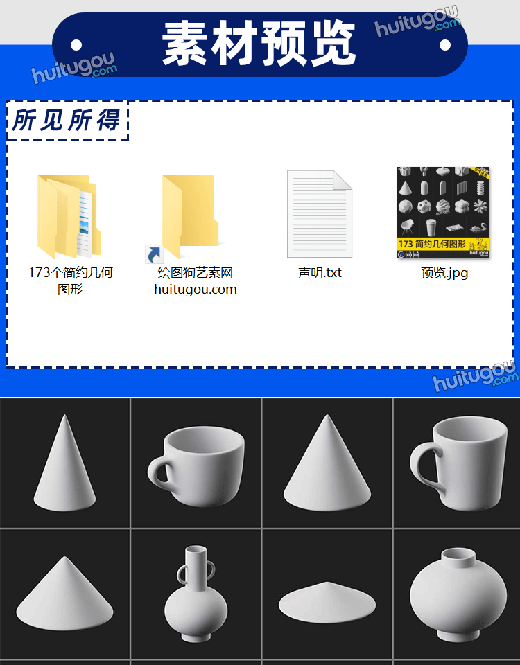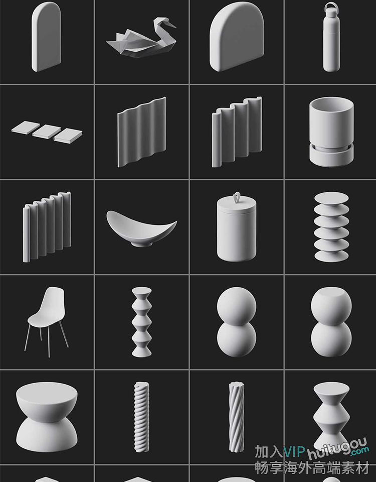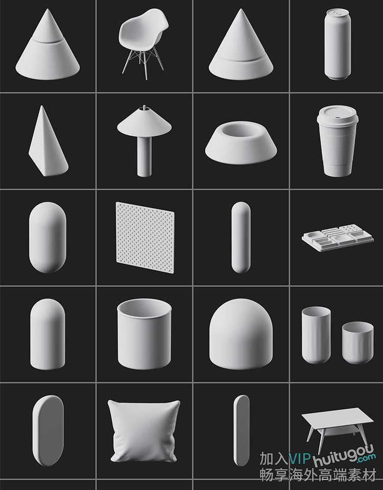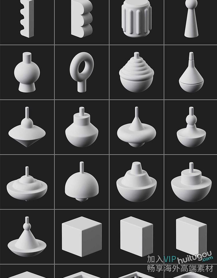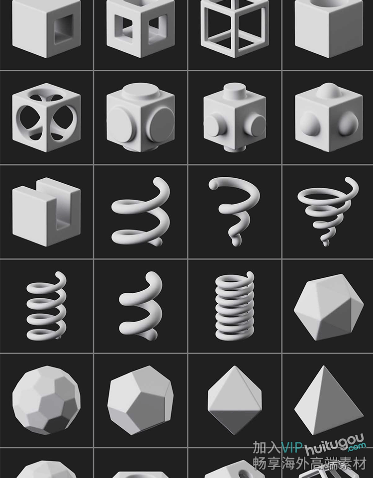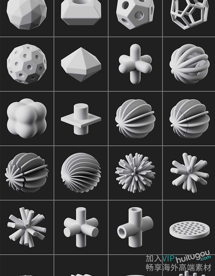 C4D简约几何图形3D模型fbx格式OBJ装饰螺旋锥形球型三维设计素材