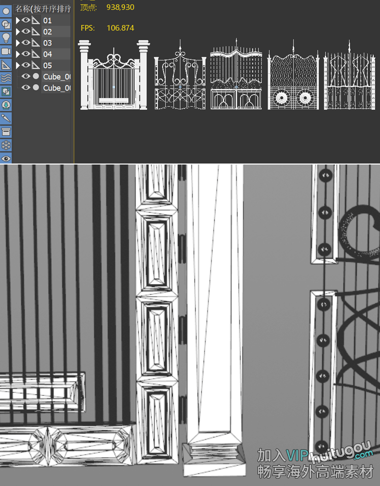 C4D维多利亚风格古典欧式大门铁门3D模型FBX格式OBJ建模渲染素材