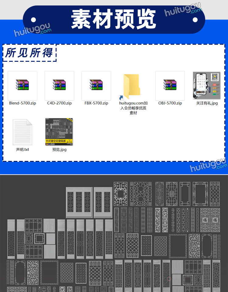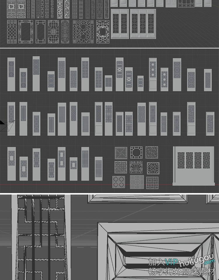 Blender国风中式镂空花窗隔断屏风门窗3D模型C4D建模渲染OBJ素材