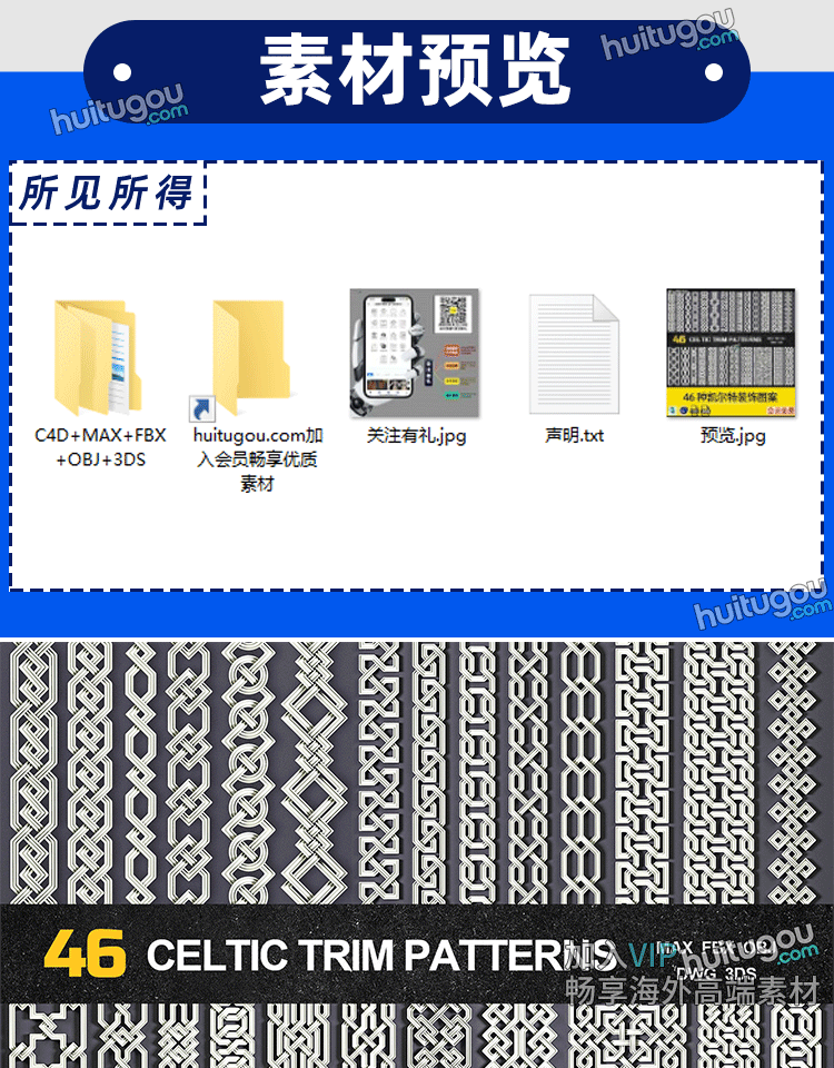 46种凯尔特装饰雕花图案3D模型C4D建模渲染设计MAX素材FBX格式OBJ