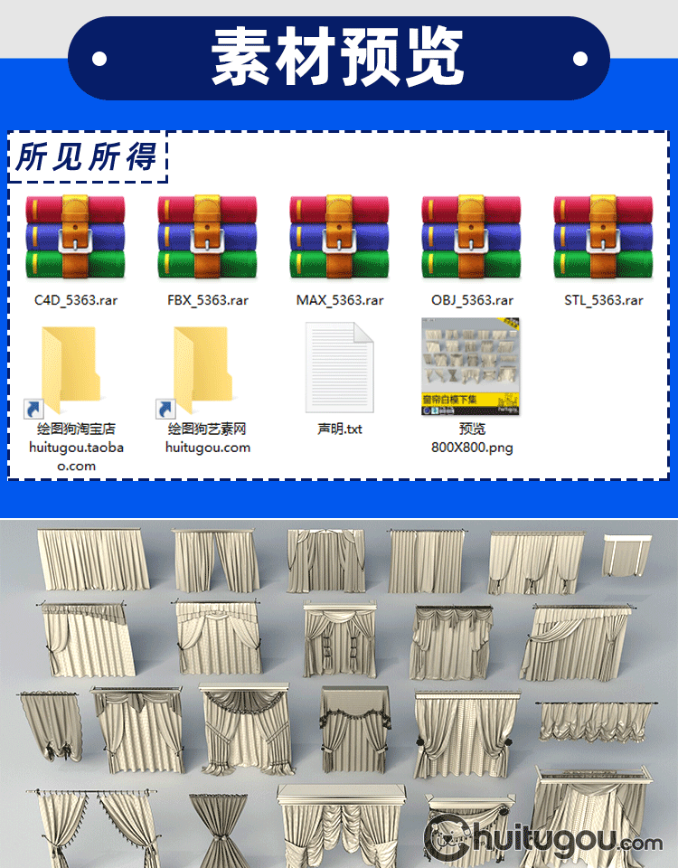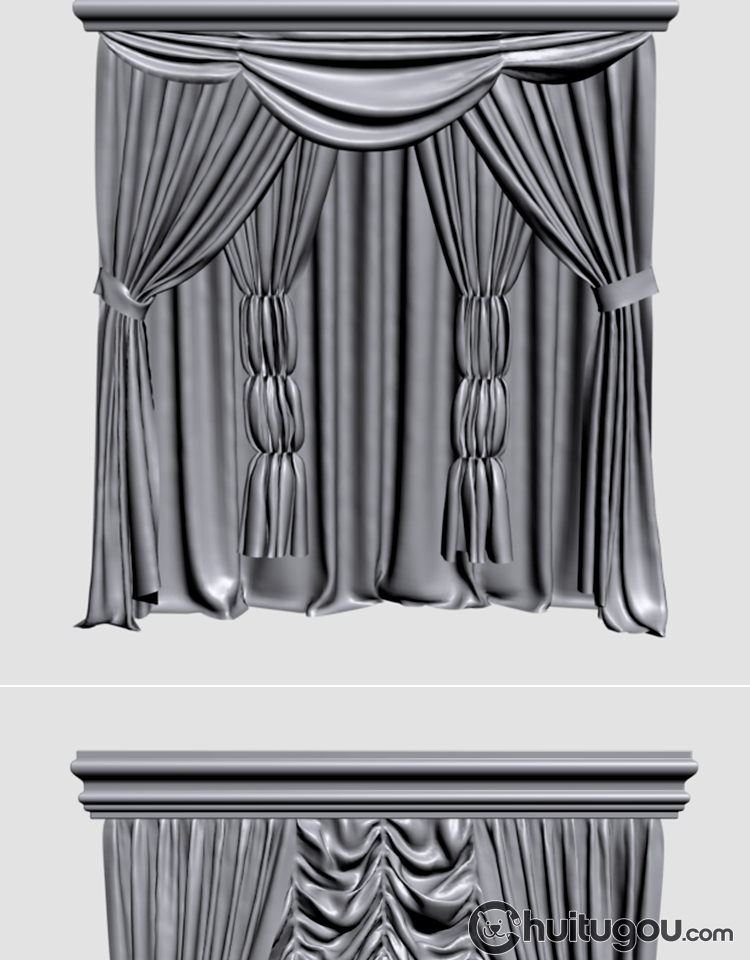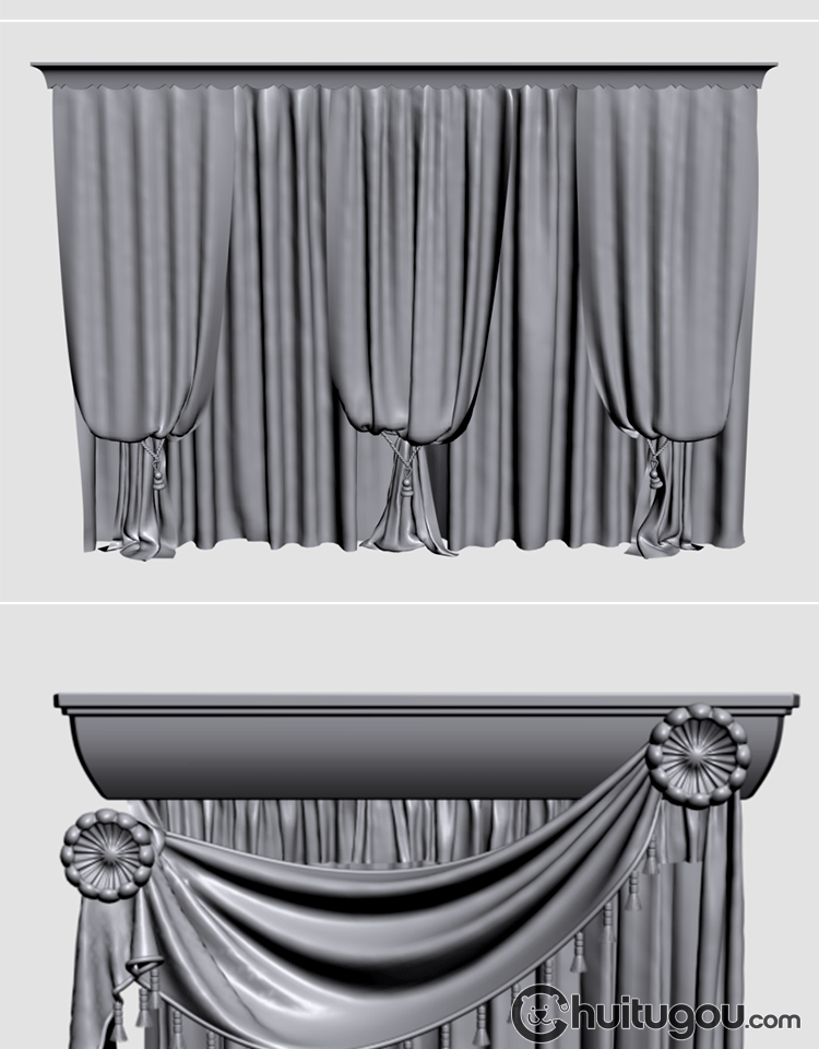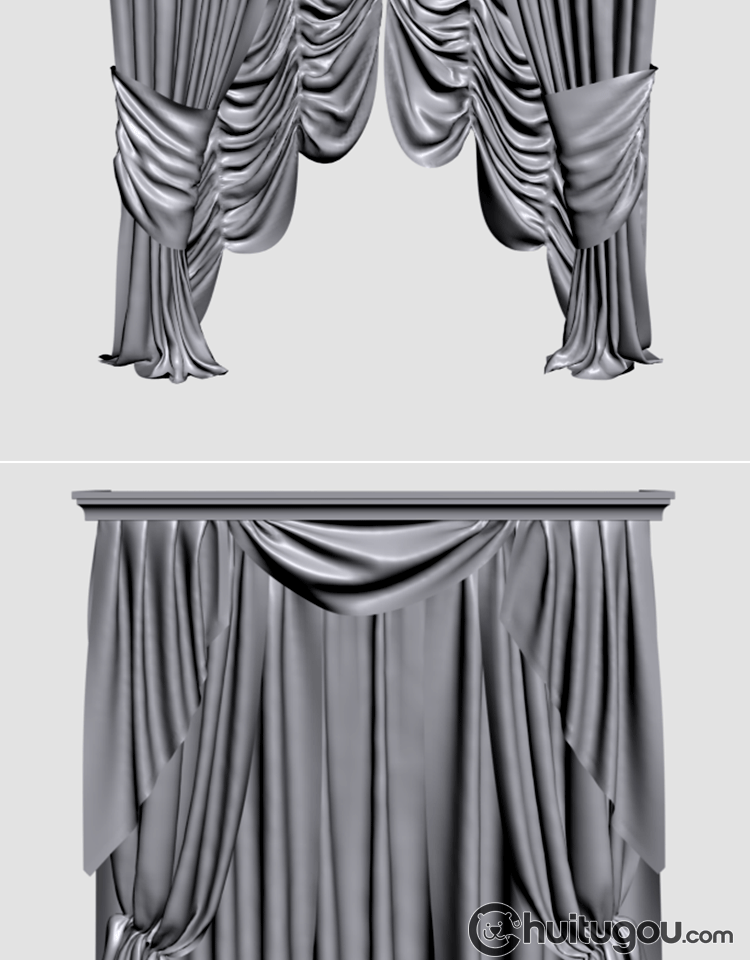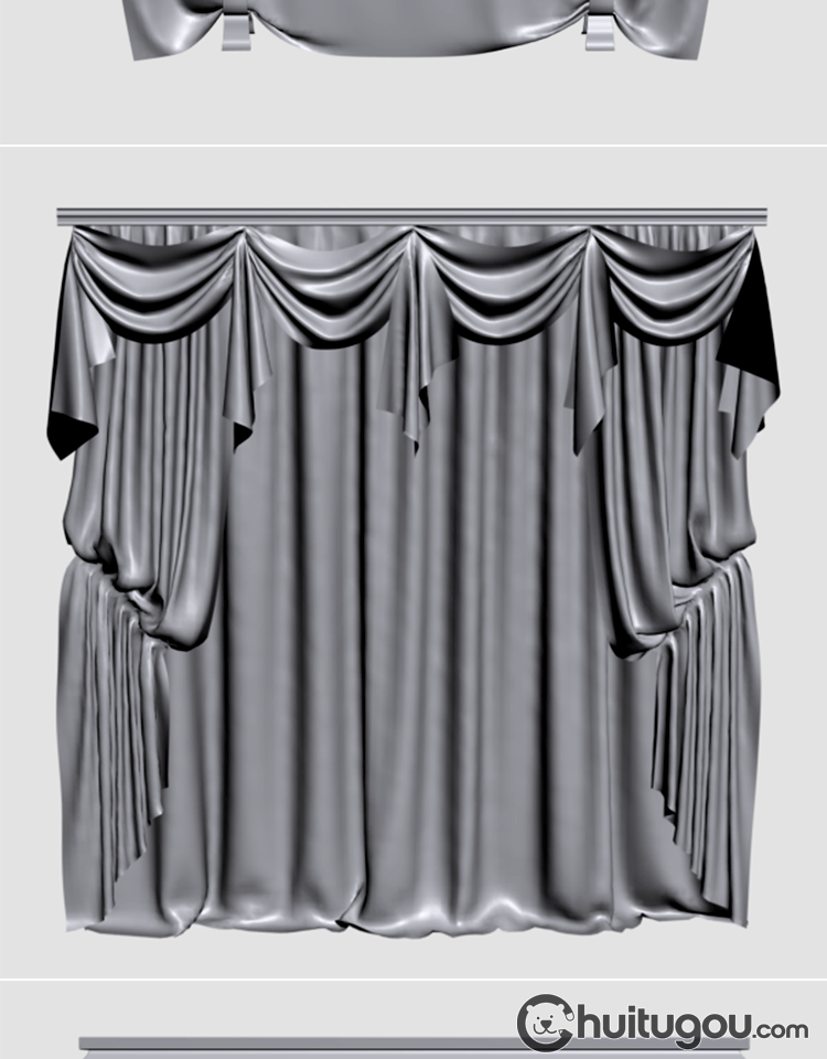 3D豪华宫廷窗帘C4D窗纱布MAYA舞台背景罗马帘建模渲染设计素材OBJ