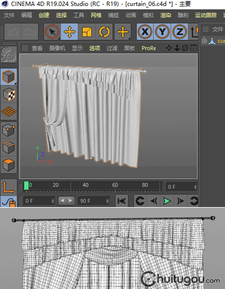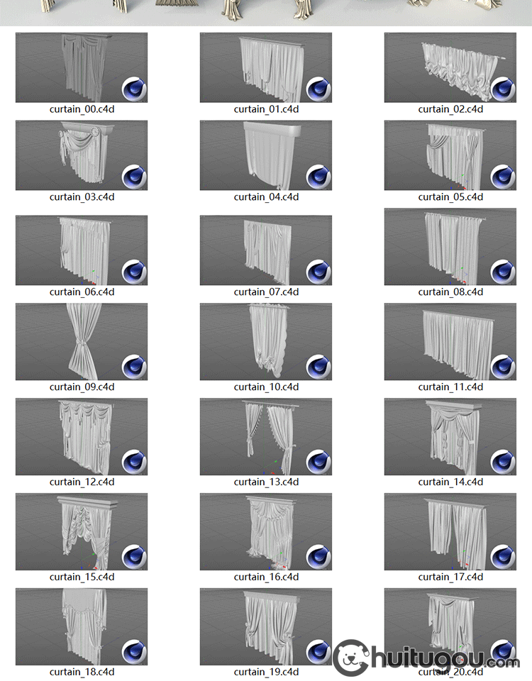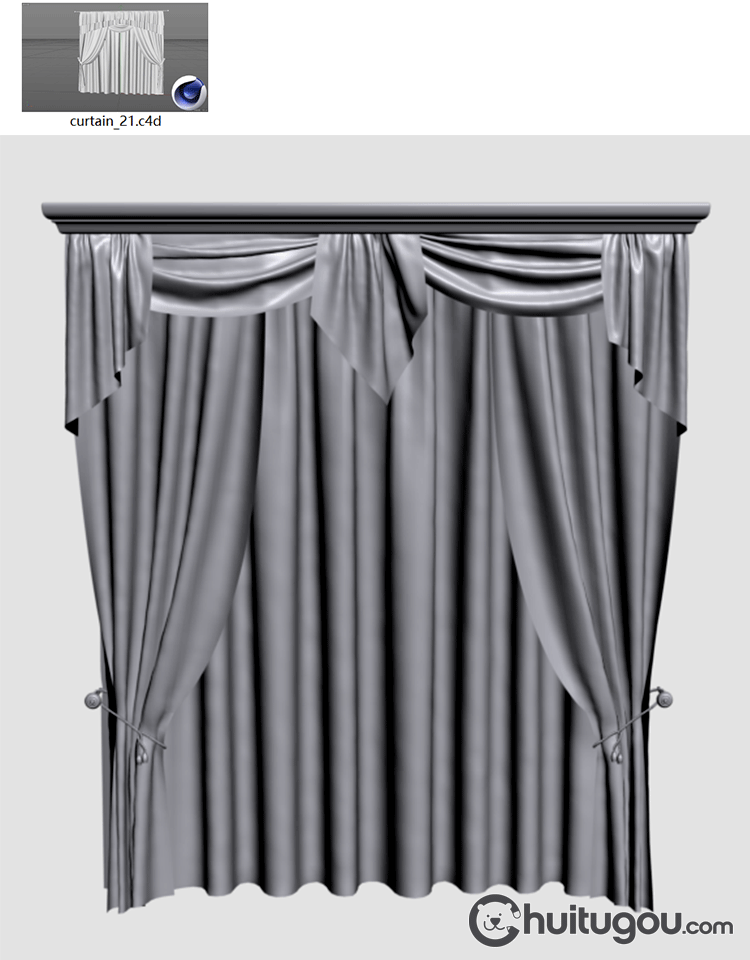 中模窗帘模型C4D古典纱帘剧院帘布罗马帘Blend基础网格3D设计素材