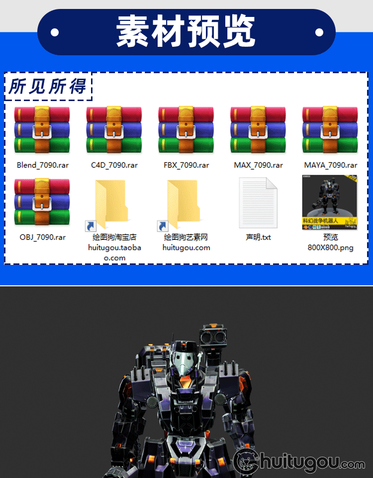 Blender科幻机器人3D模型C4D基础网格MAYA三维建模渲染OBJ素材MAX