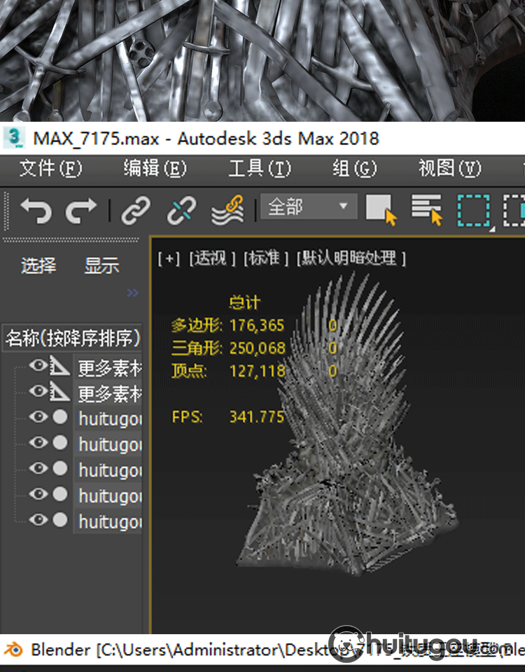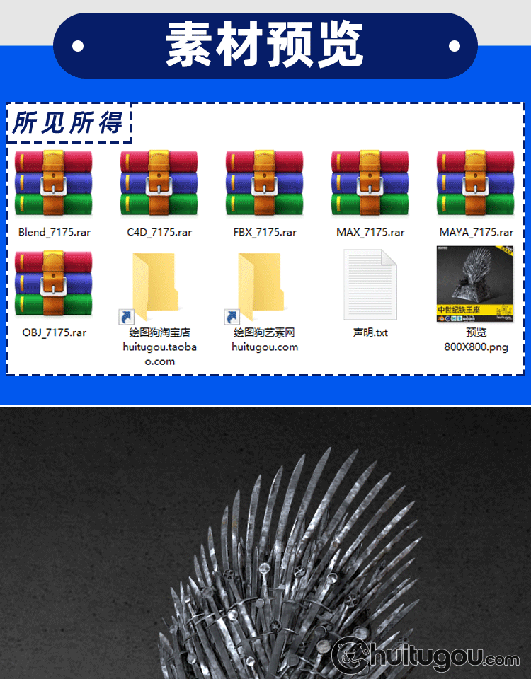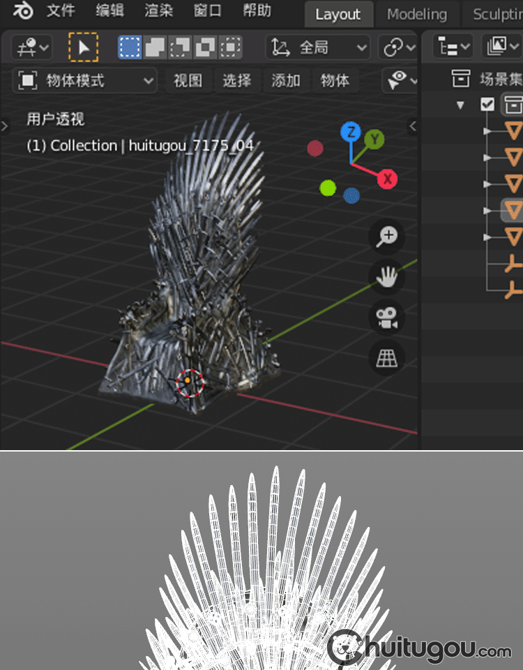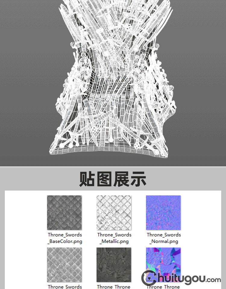 Blender权力游戏铁王座3D模型MAYA宝座PBR风格渲染素材FBX格式OBJ