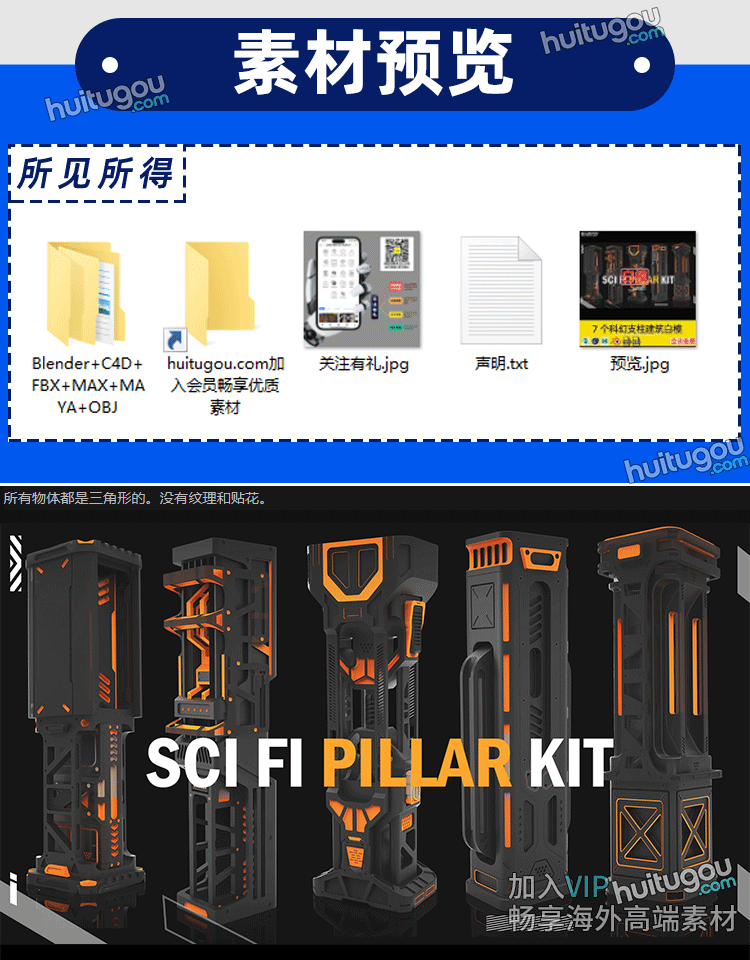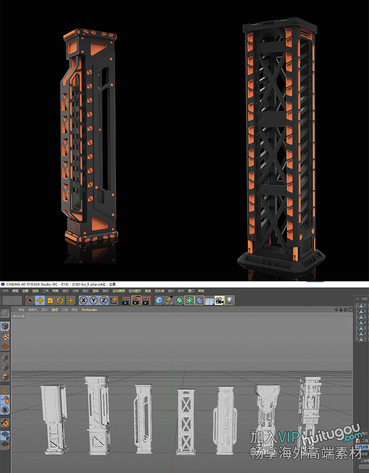 7个Blender科幻支柱建筑白模C4D模型FBX格式OBJ建模渲染设计素材
