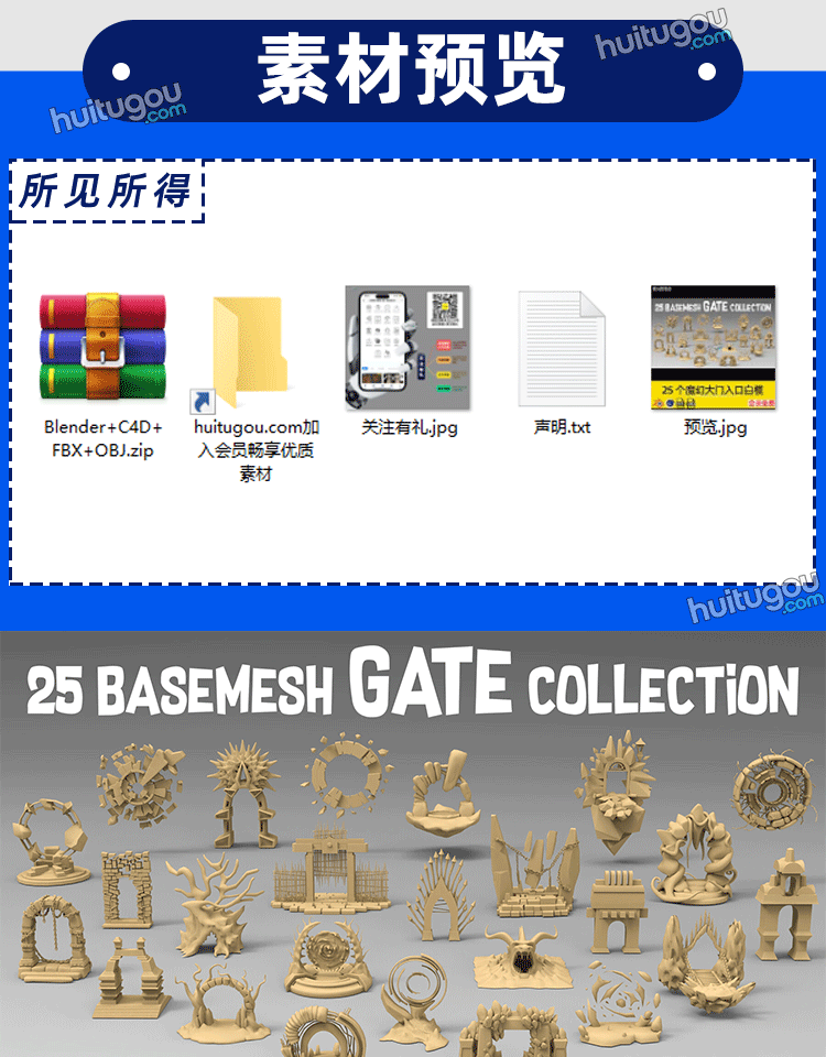 25个Blender魔幻科幻大门地洞入口穿越门基础白模3D建模设计素材