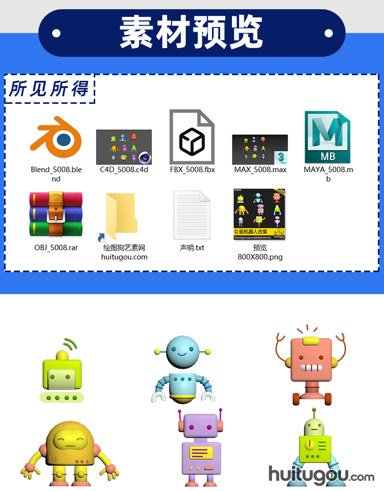Q版 可爱机器人Blender卡通模型C4D OBJ FBX MAX MAYA 素材源文件