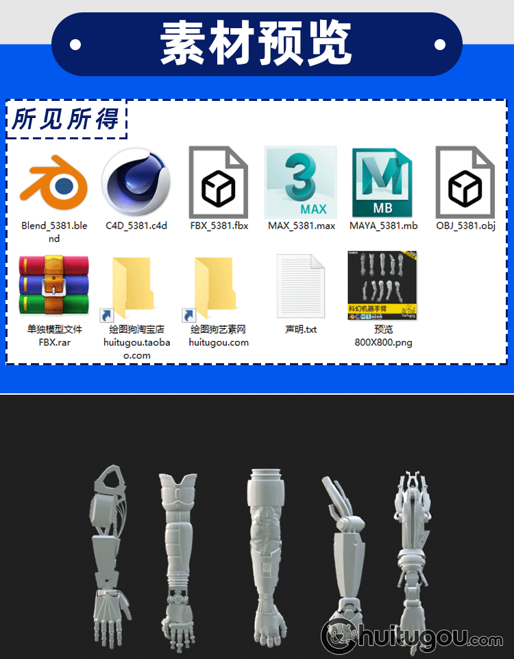 10款 工业机器手臂C4D科幻机甲机器人Blender设计建模渲染素材OBJ