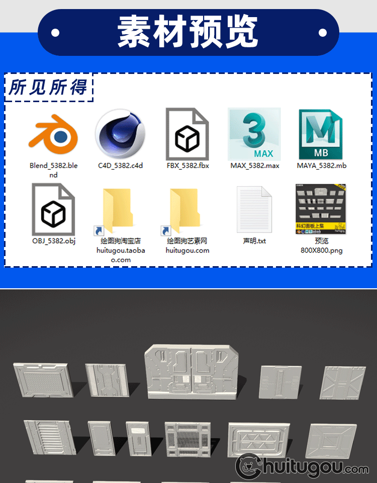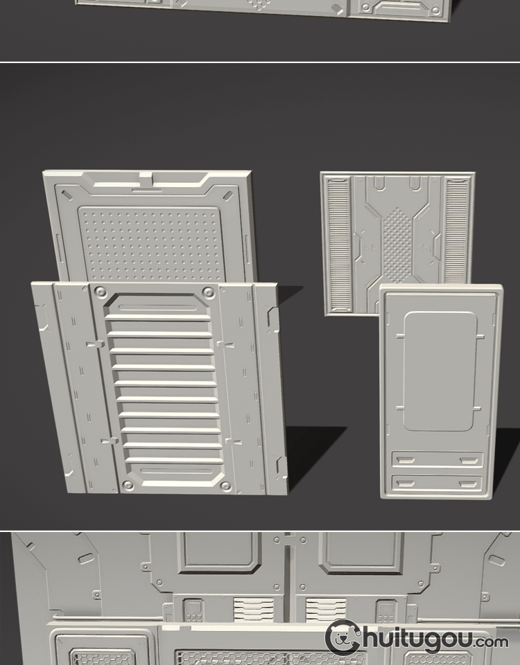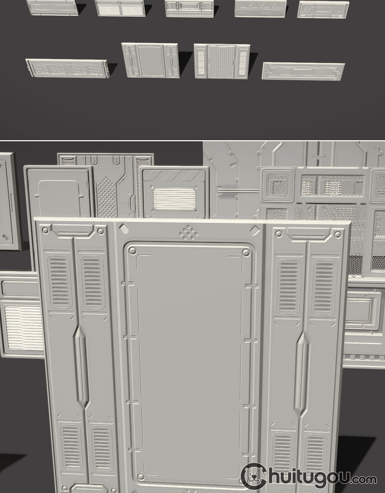 科幻面板3D模型C4D未来机甲硬OBJ表面太空舱室内实验室机械素材mb