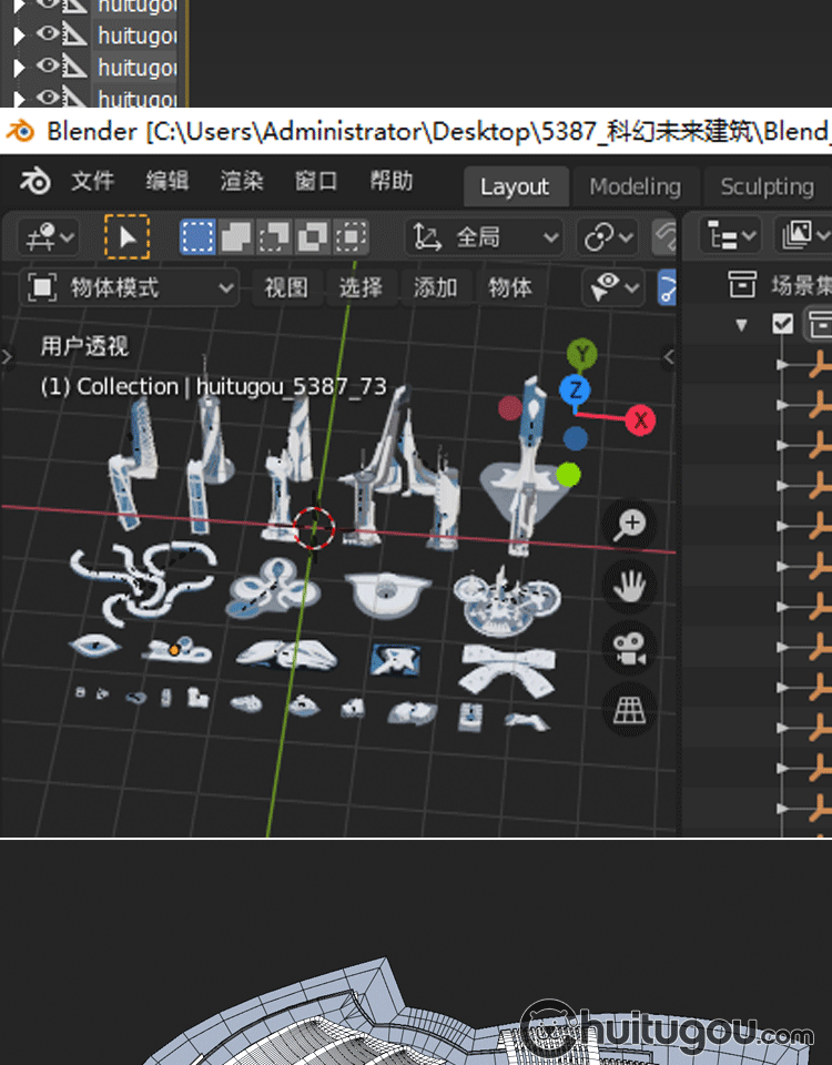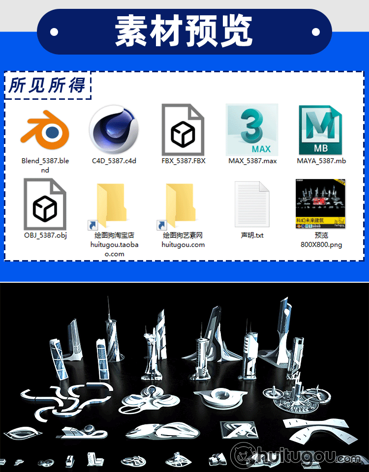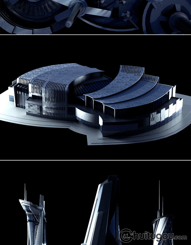 C4D未来科幻建筑3D模型MAX概念摩天大楼MAYA建筑外观设计素材OBJ