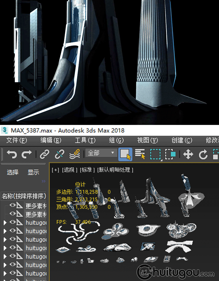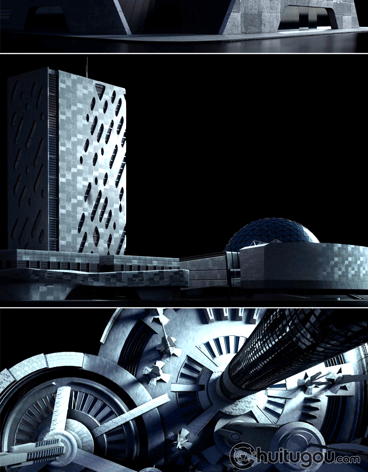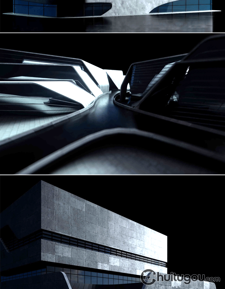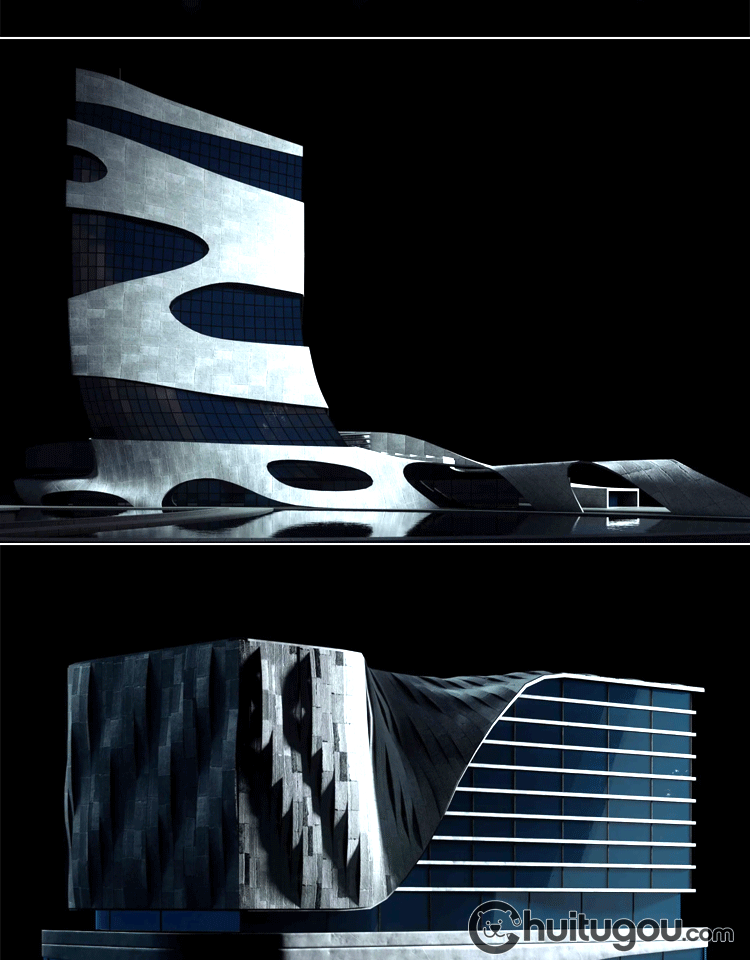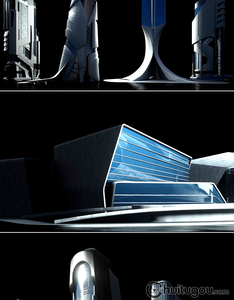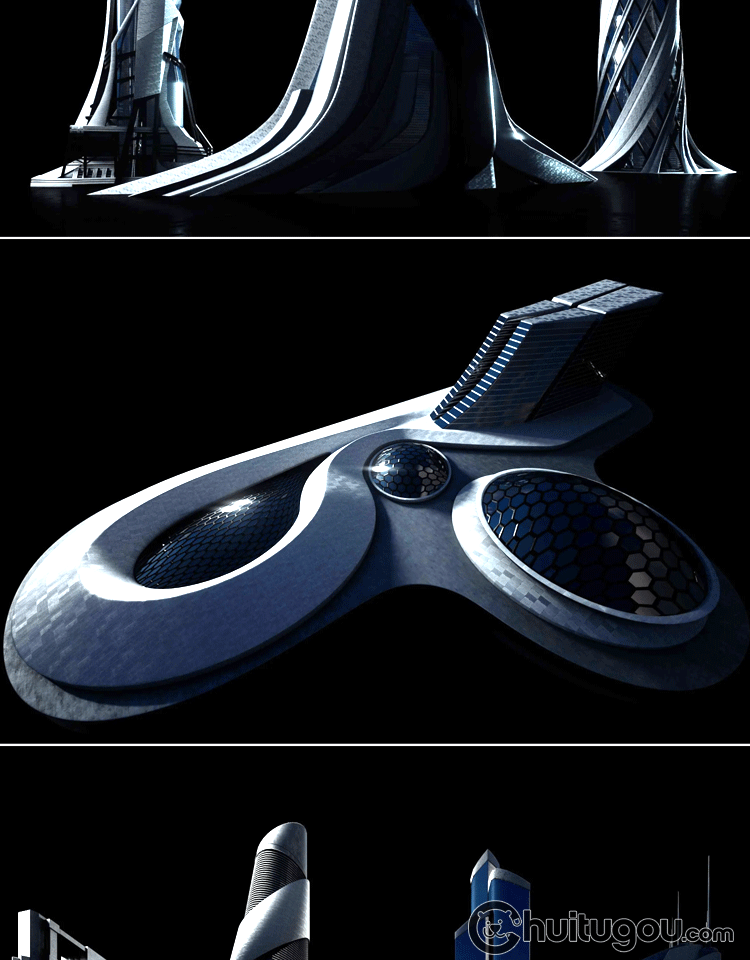 C4D科幻摩天大楼MAX抽象设计感OBJ未来概念建筑外观3D设计素材FBX