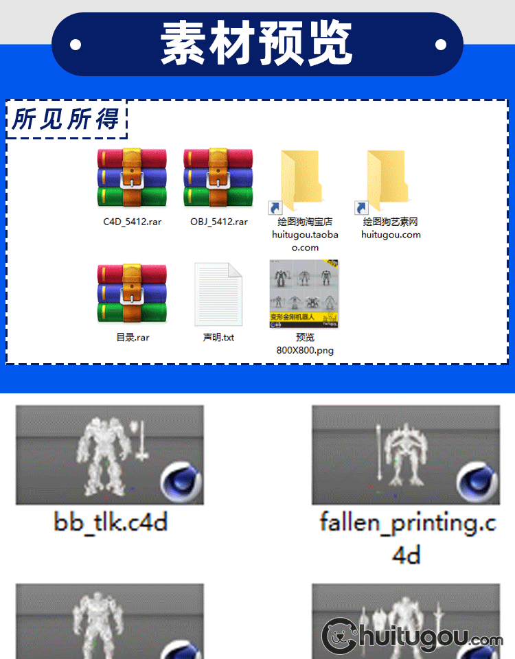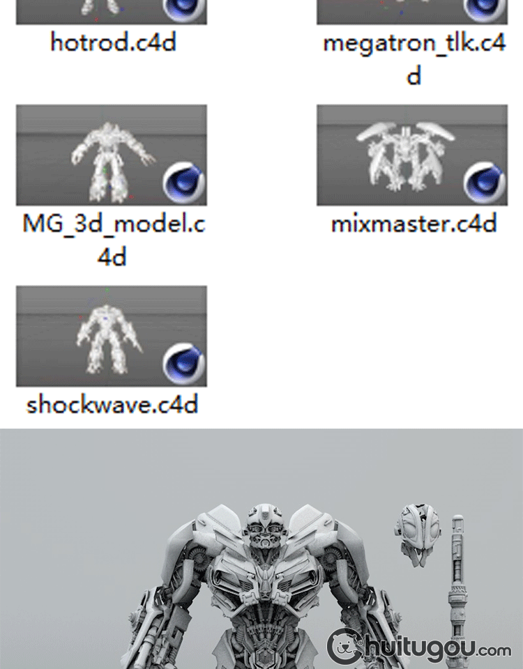 七款C4D变形金刚机器人3D模型OBJ机械机甲战士硬表面建模设计素材