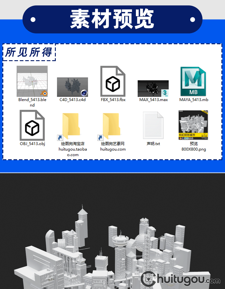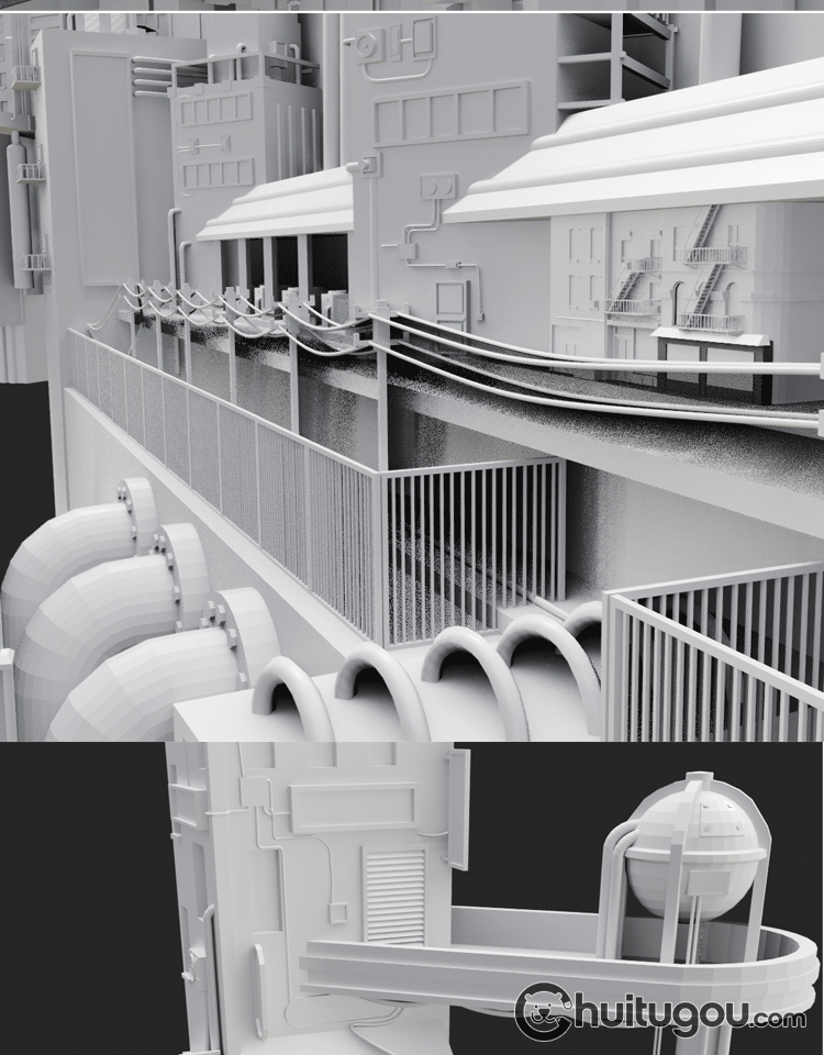 Blender科幻城市建筑模块C4D未来工业科技城FBX建模渲染3D素材obj