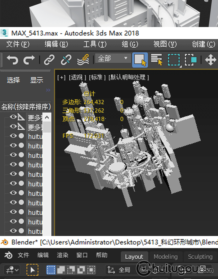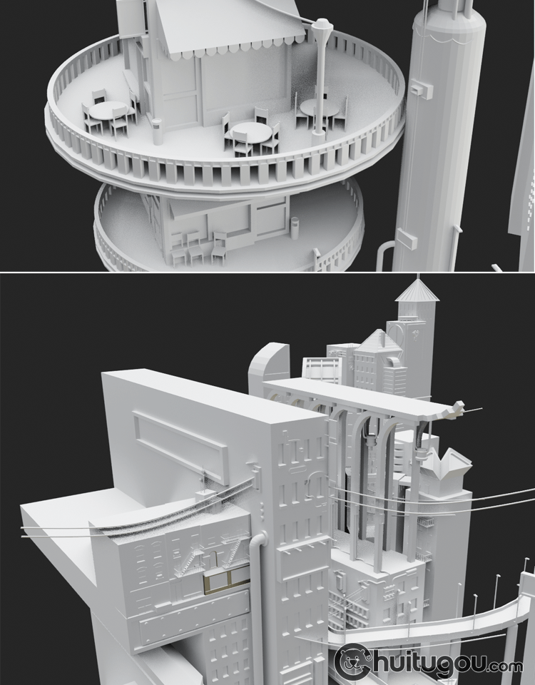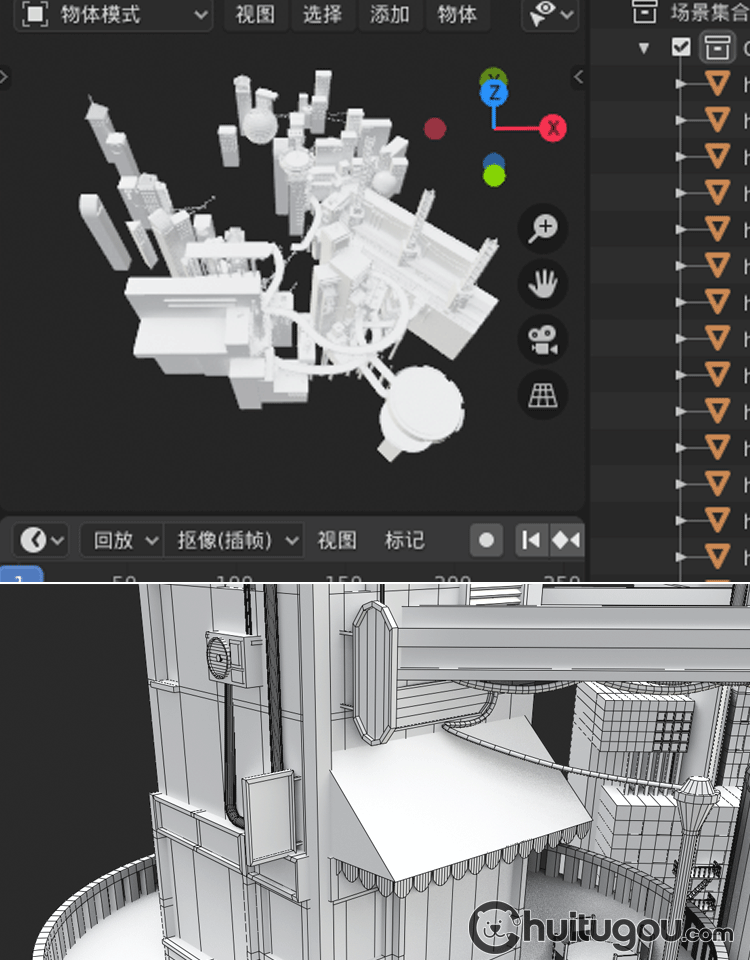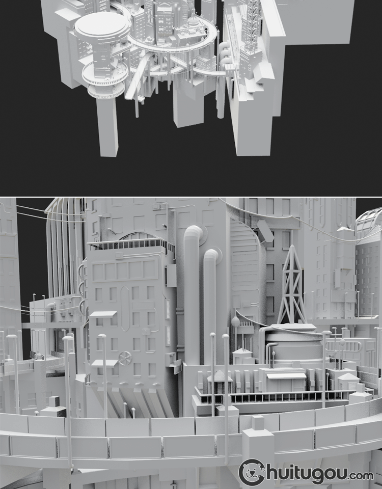 Blender创意科幻城市场景模型FBX未来科技城OBJ低面白模3D素材MAX