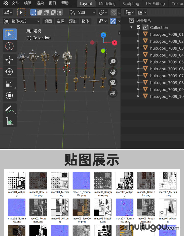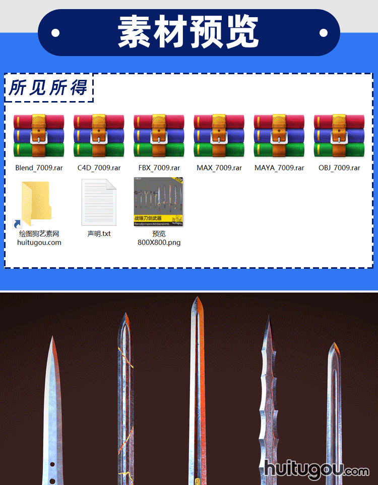 低面写实PBR战锤刀剑Blend武器兵器模型C4D MAX FBX OBJ MAYA素材