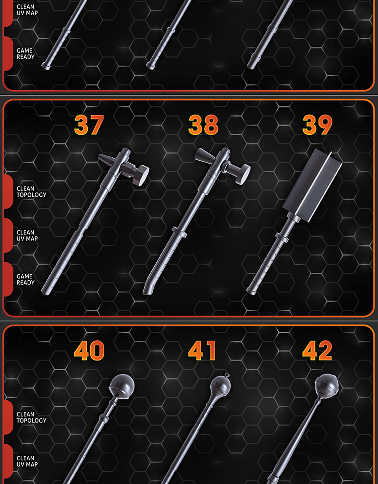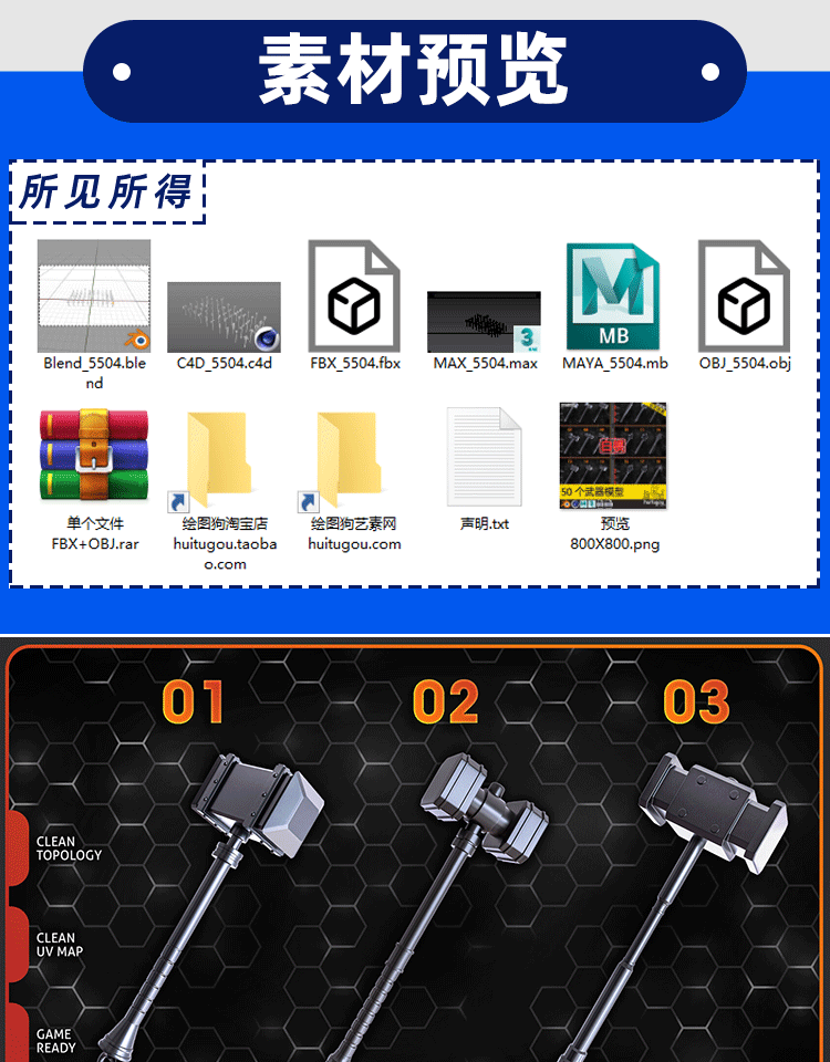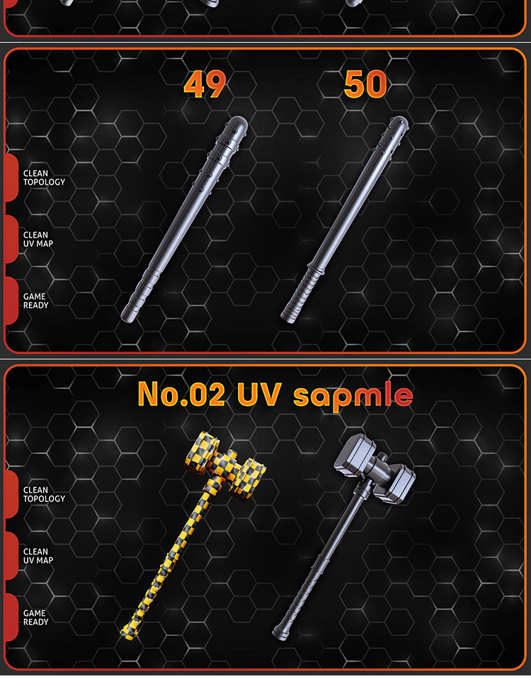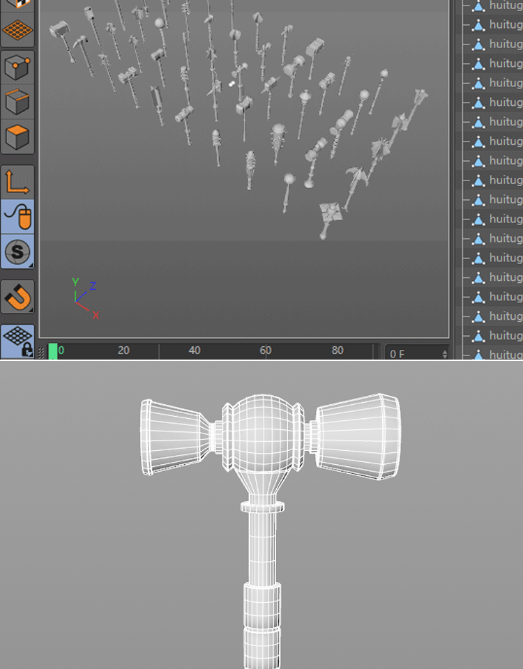 MAYA冷兵器武器3D模型C4D战锤子狼牙棒槌OBJ格式FBX ZB建模雕刻