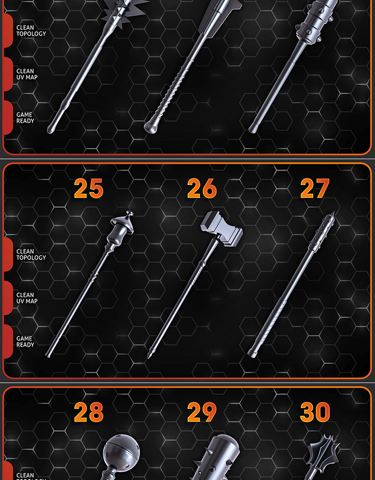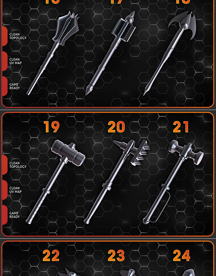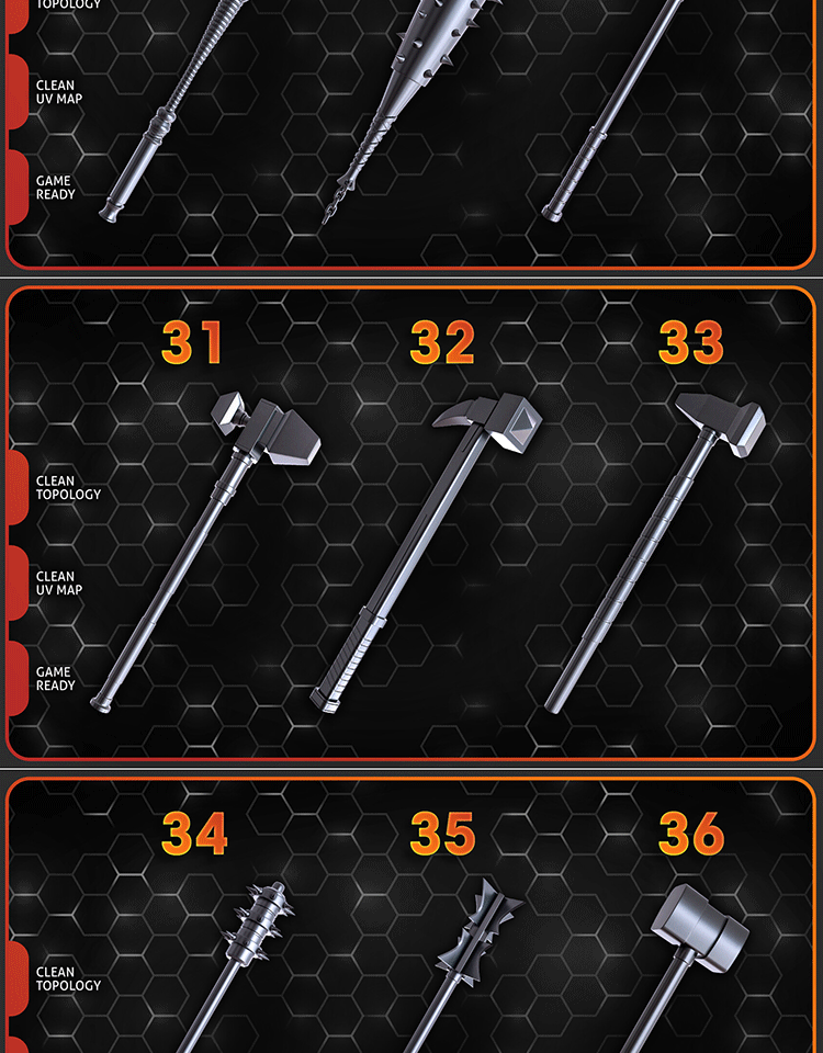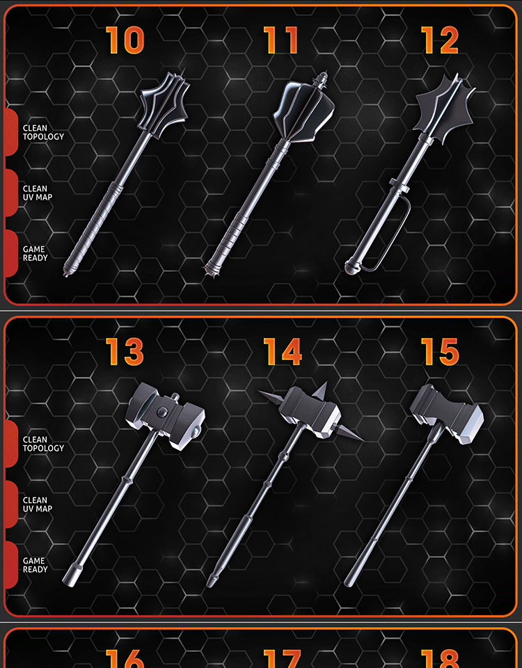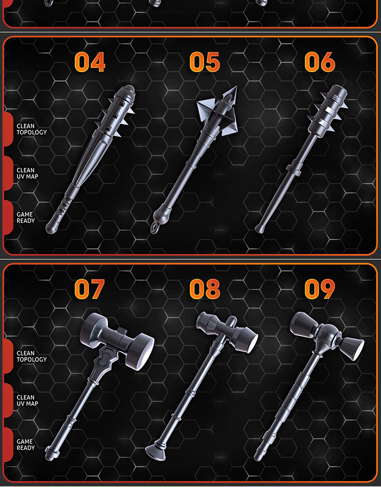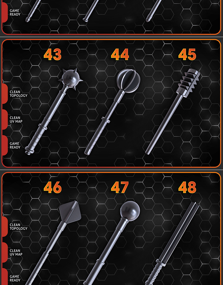 中世纪游戏冷兵器模型C4D武器锤子狼牙棒MAYA白模低模建模3D素材