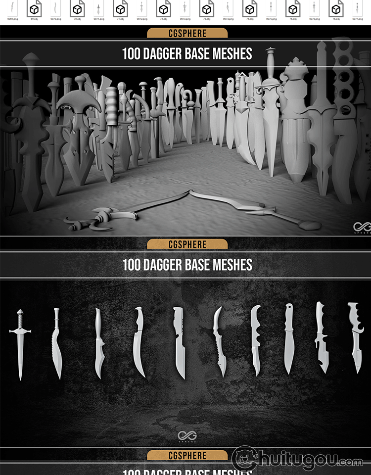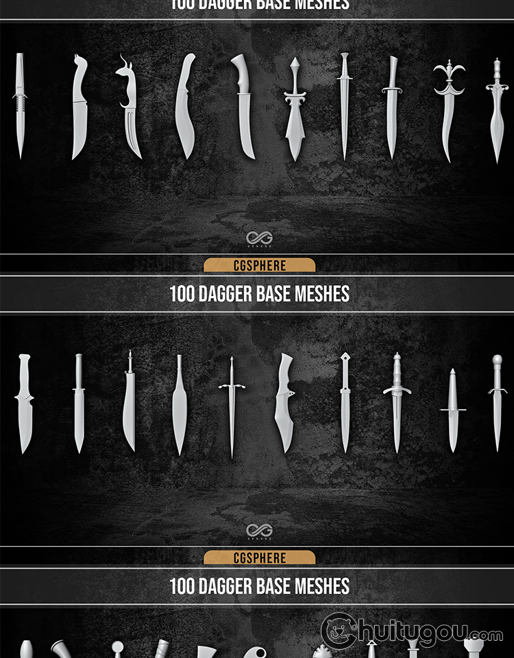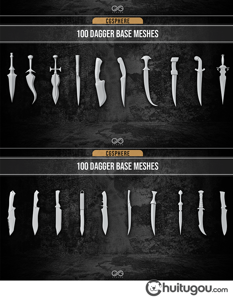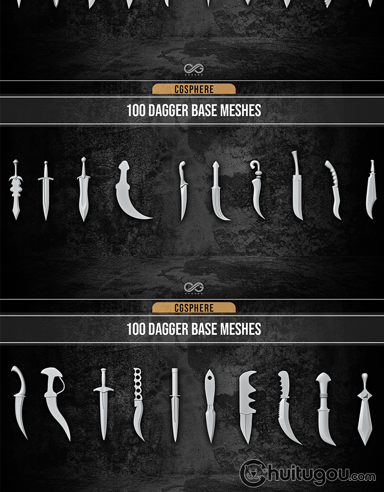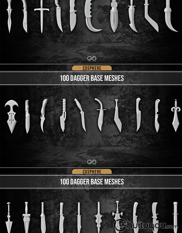OBJ格式刺客武器匕首短刀3D模型 建模雕刻设计素材 ZB 犀牛 nomad