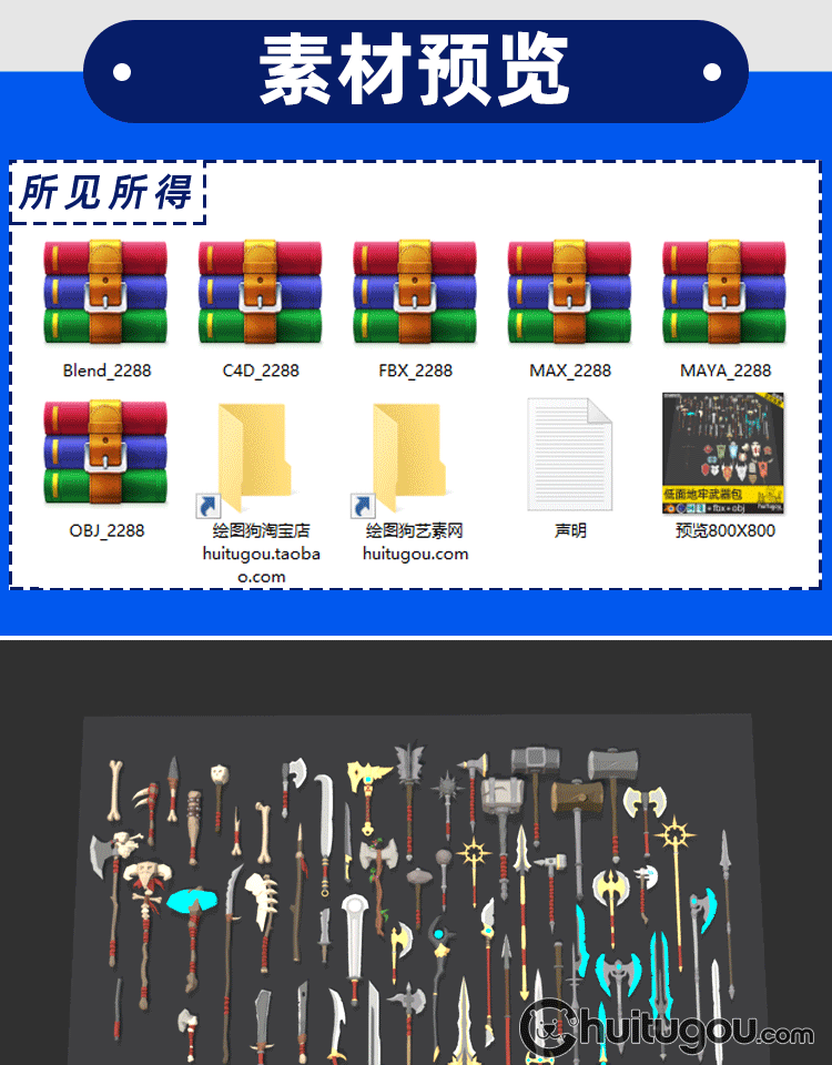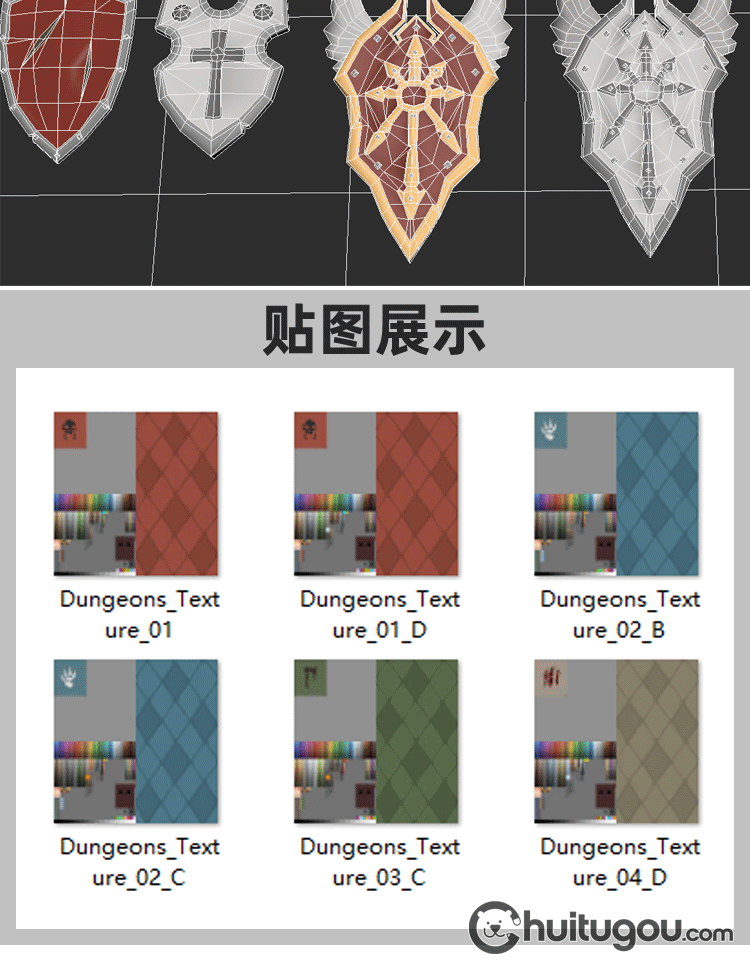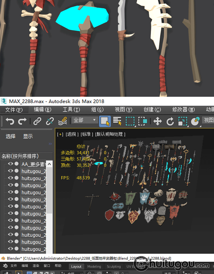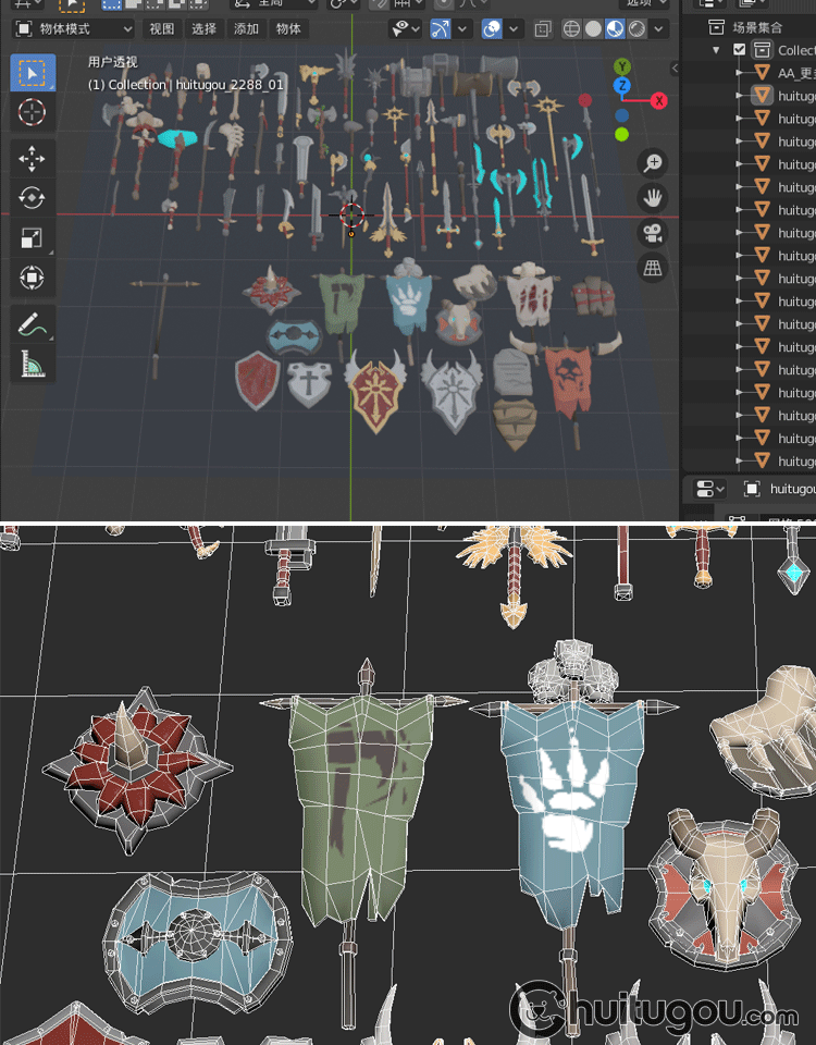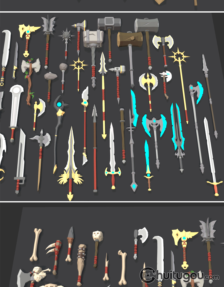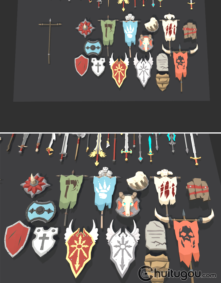 低面 中世纪武器模型C4D盾牌刀剑斧头锤子MAX战旗MAYA格式3D素材
