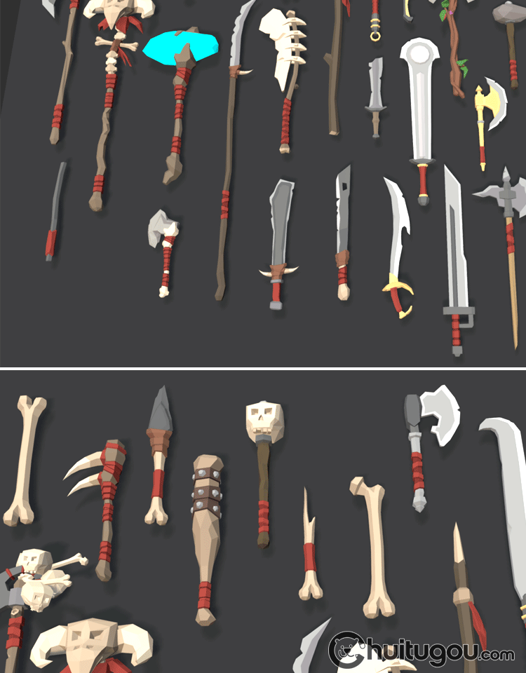 卡通低面 吃鸡游戏武器C4D锤子扳手MAYA弓弩手榴弹炸药3D设计素材