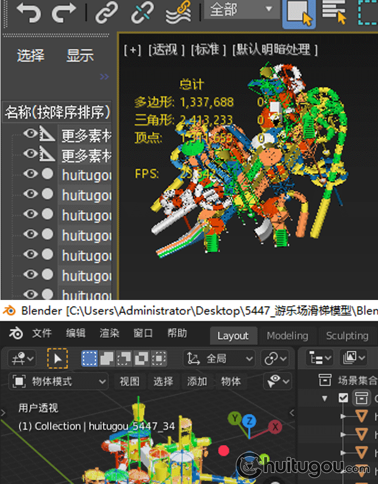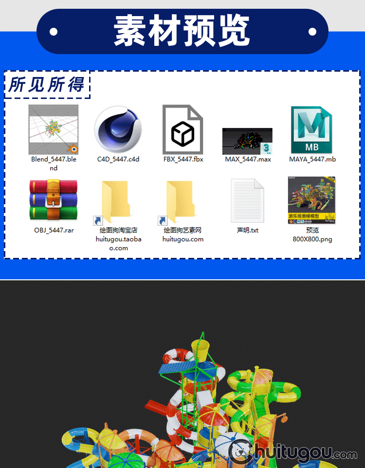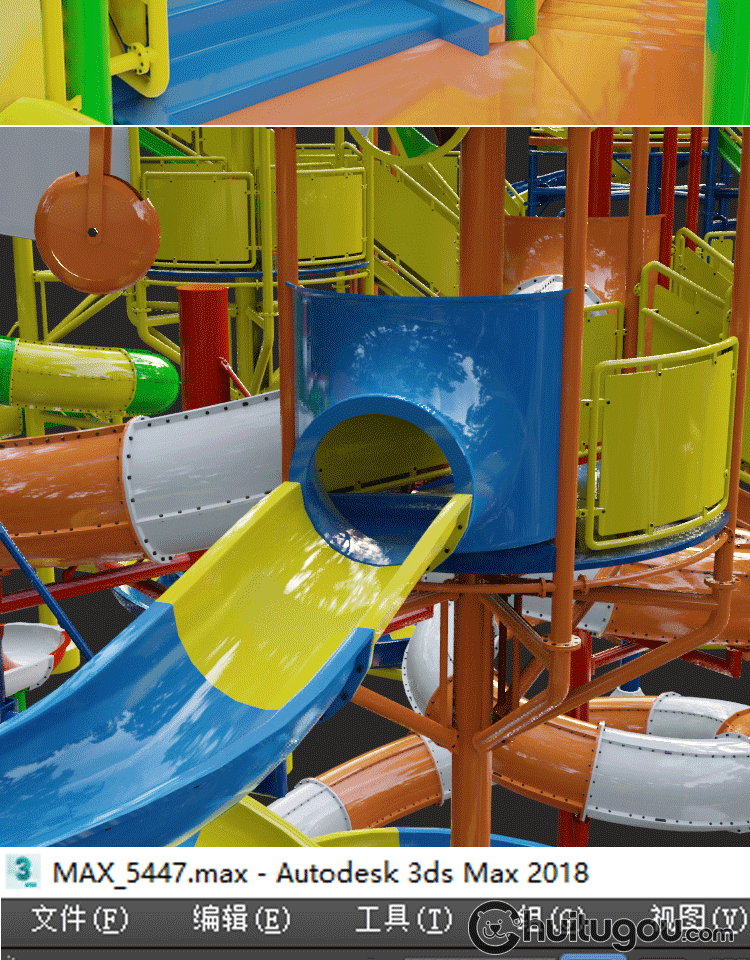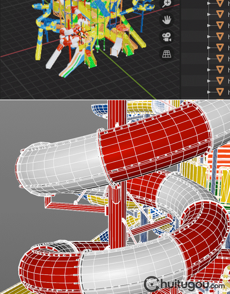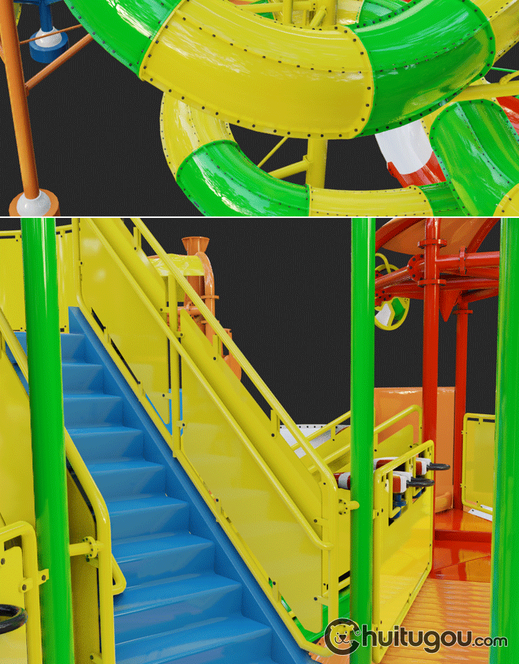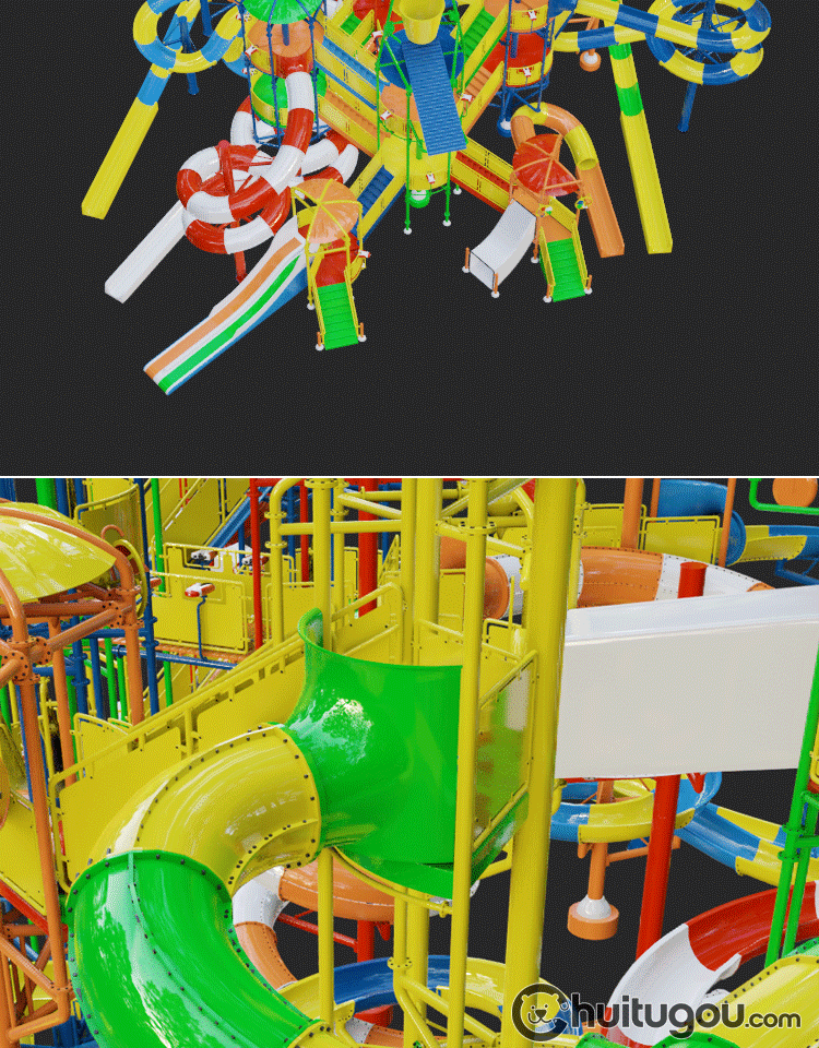 C4D游乐场滑梯3D模型MAYA水上乐园滑道设施MAX建模渲染FBX素材OBJ