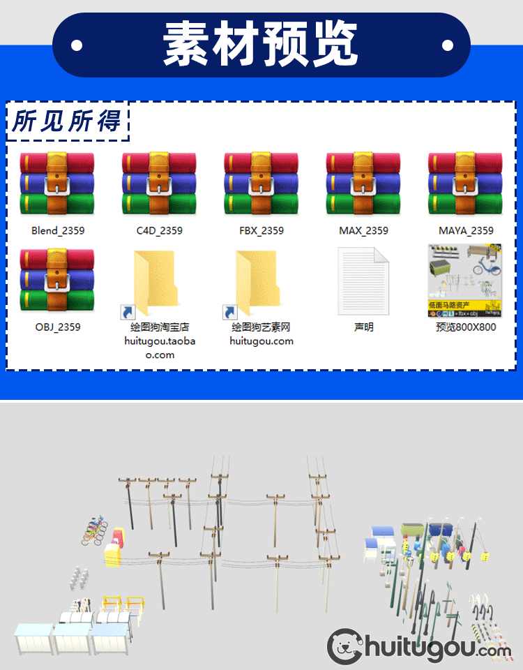 - 低面 城市资产包Blender卡通建筑房屋路桥模型FBX摩天轮体育场OBJ 2022-11-08