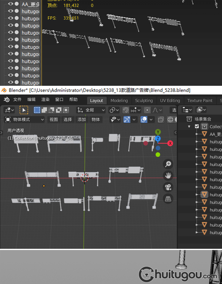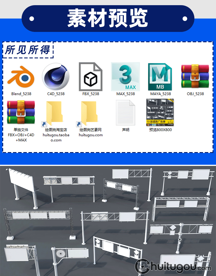 道路广告牌模型C4D城市道路指示牌Blend马路标识牌MAX素材OBJ文件