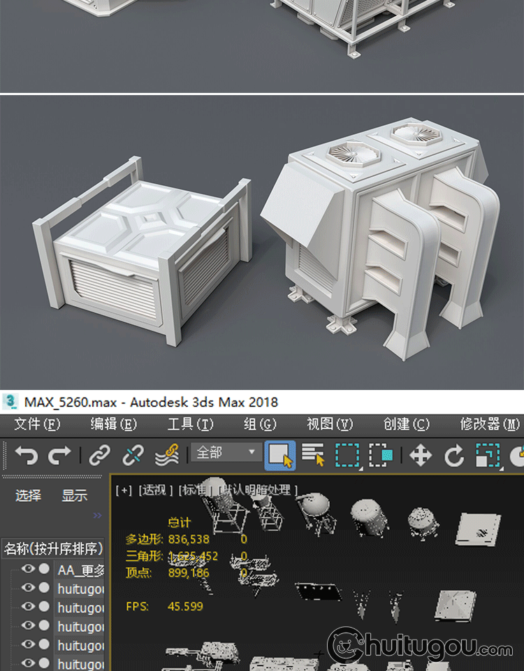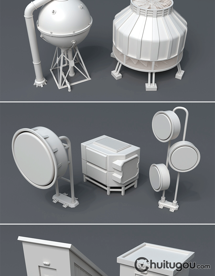 天台屋顶场景设备MAX蓄水塔采光井烟道口排风口楼梯口模型OBJ素材