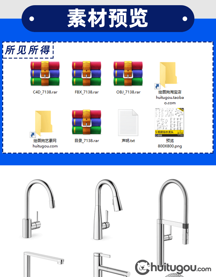C4D五金水龙头3D模型合集FBX建模设计素材源文件OBJ格式 犀牛可用