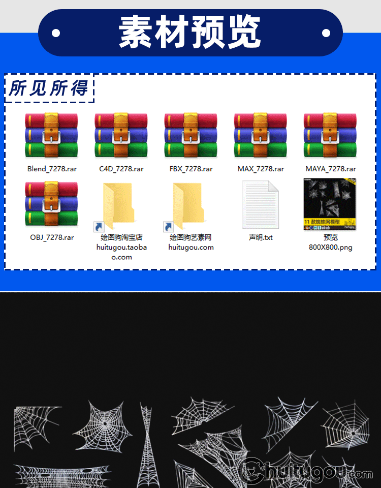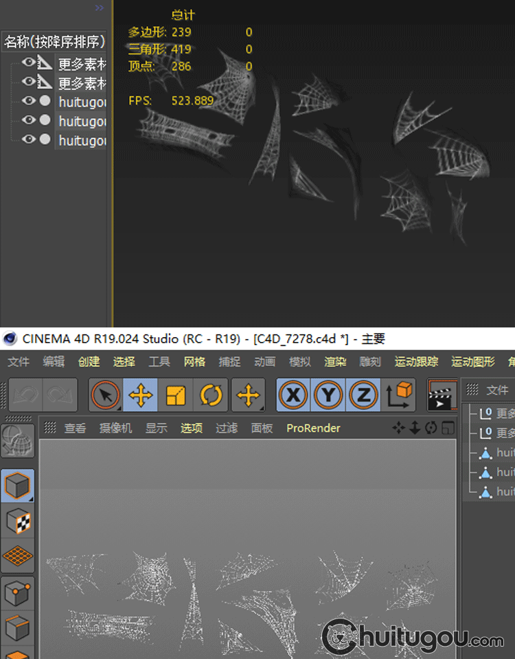 C4D/MAX蜘蛛网3D模型透贴材质效果FBX建模渲染设计素材