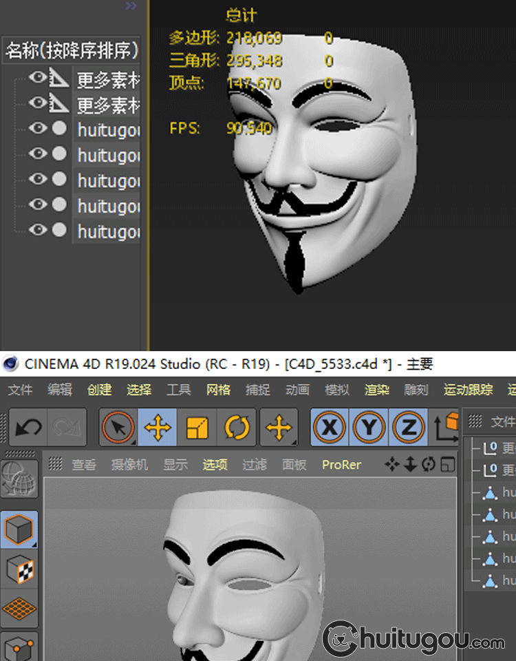 C4D万圣节恐怖骷髅面具V字仇杀MAX尖叫鬼面具FBX建模渲染素材OBJ