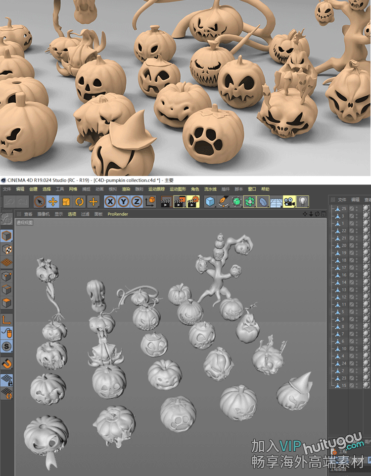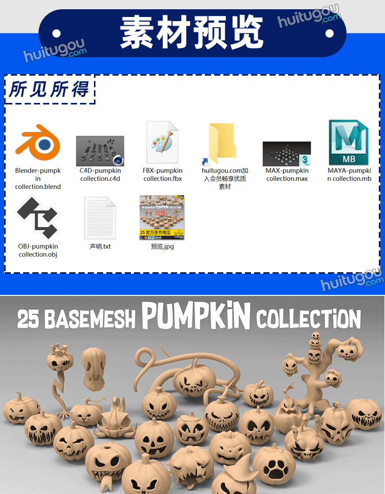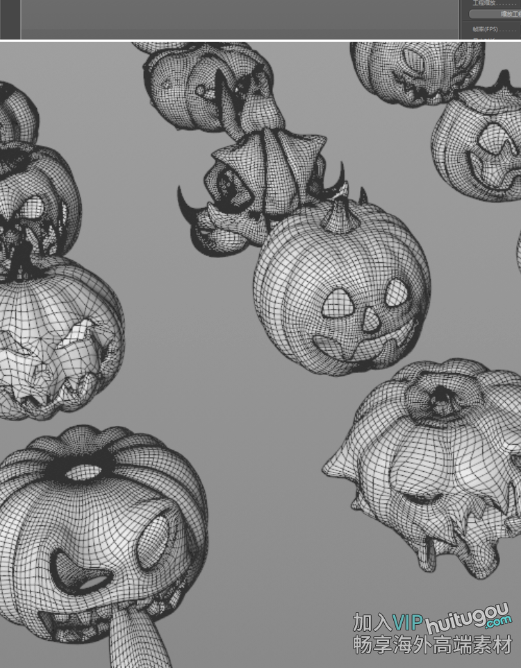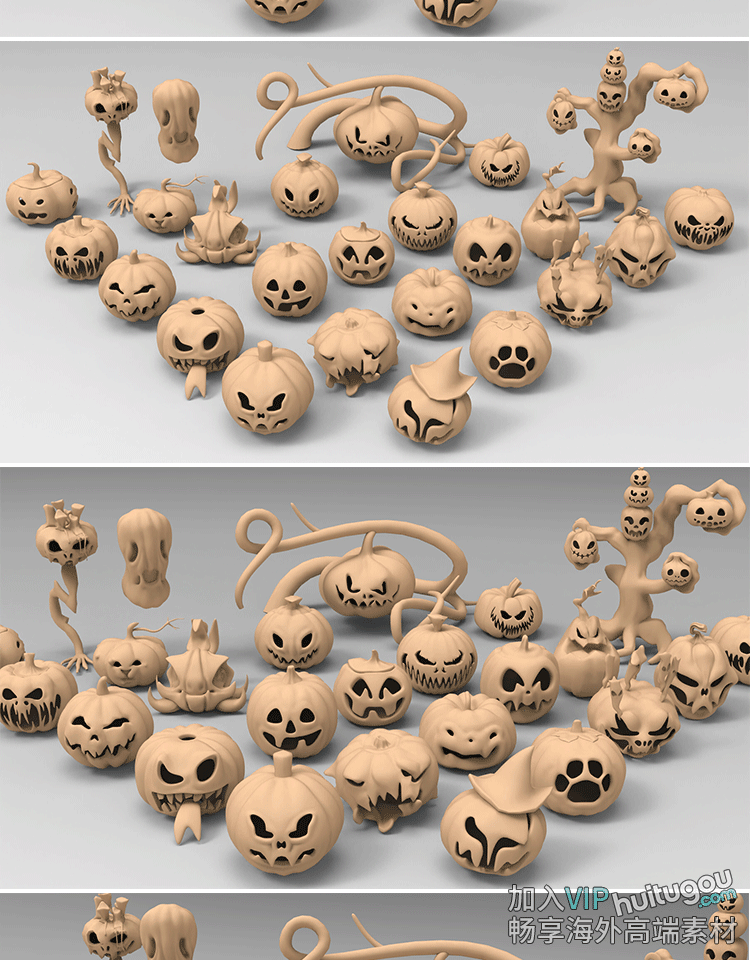 C4D万圣节南瓜灯基础白模3D模型FBX素材OBJ建模雕刻Blender MAYA