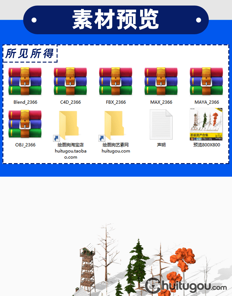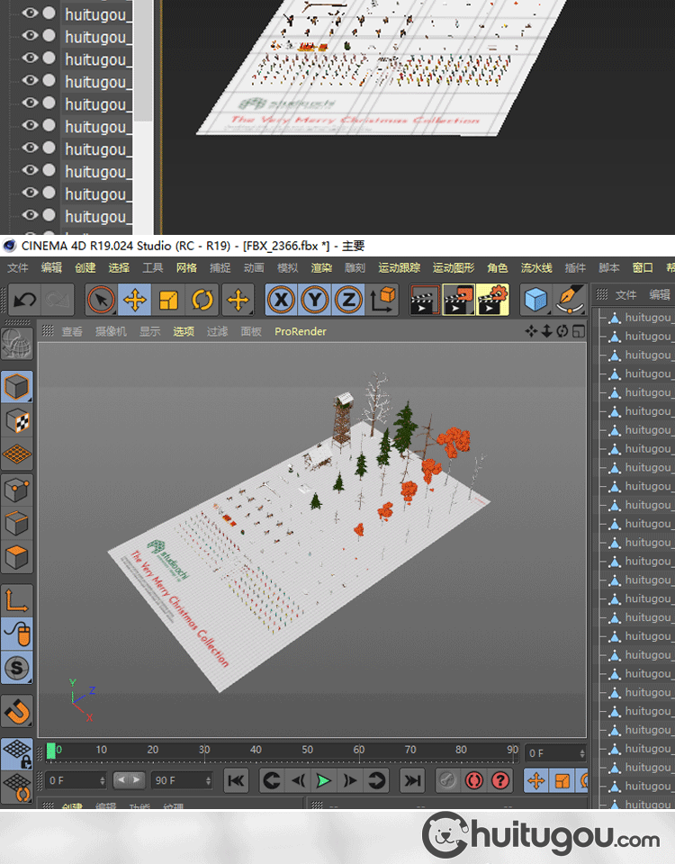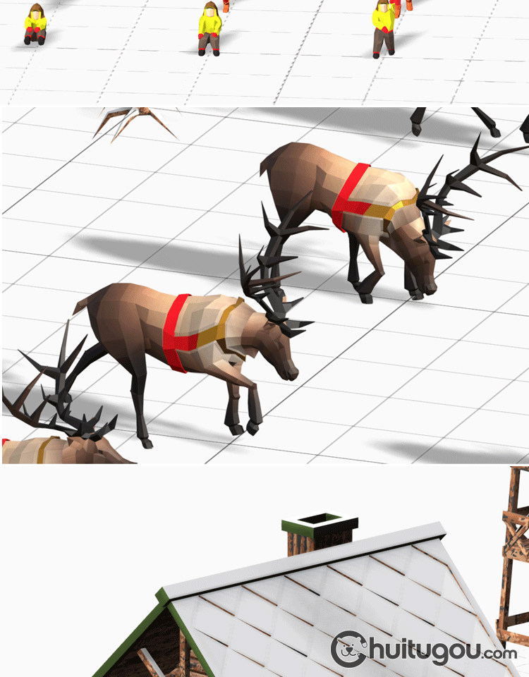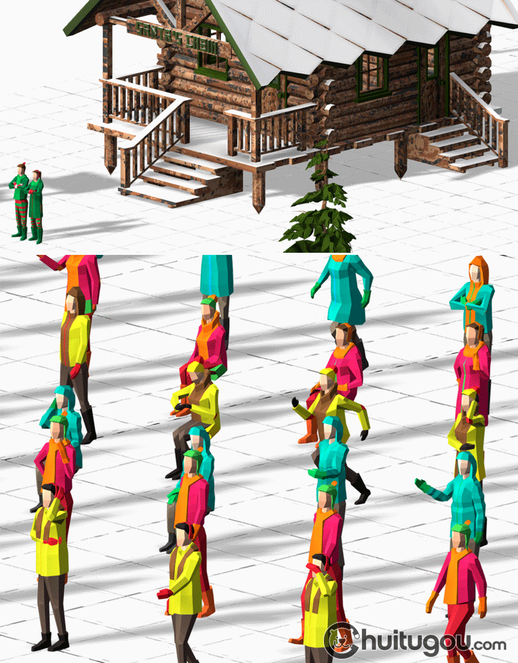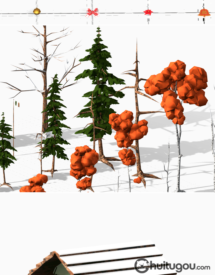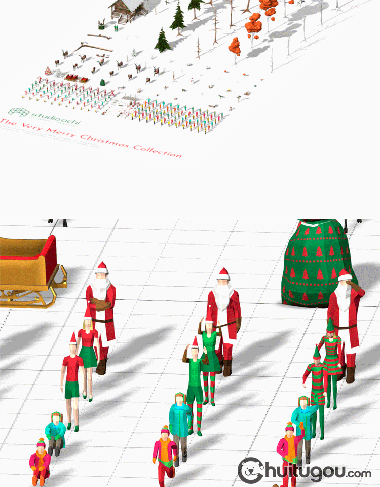 冬季圣诞节3D模型C4D卡通资产包MAX松树杉树木屋礼物人物老人小孩