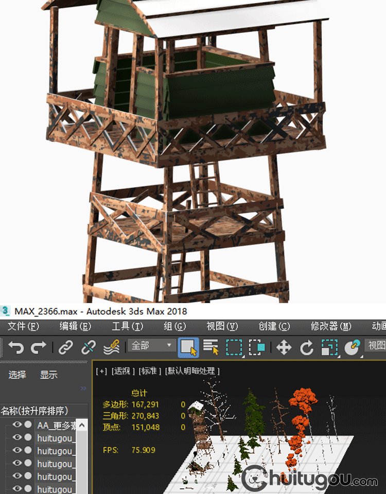 低面小房子3D模型C4D卡通木屋场景MAX花草树木FBX草地草坪素材OBJ