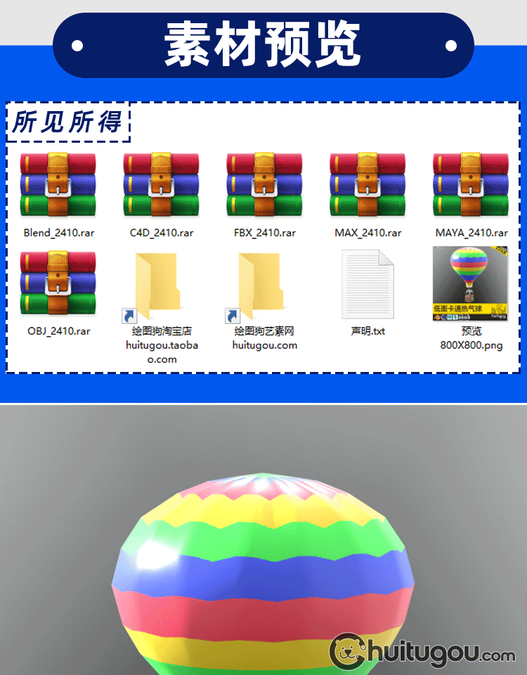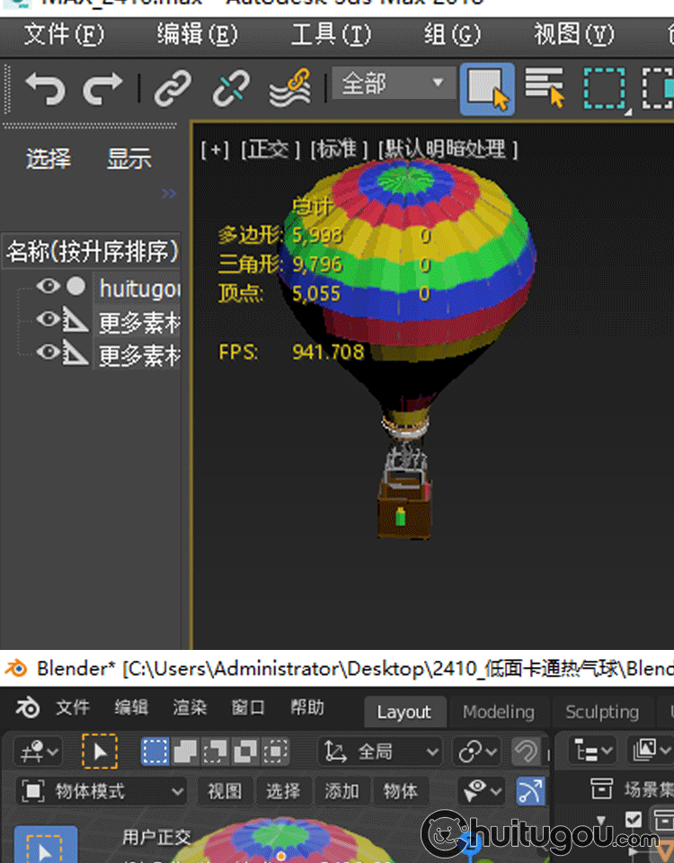 3D热气球模型Blender低面卡通风格MAYA MAX FBX OBJ C4D设计素材