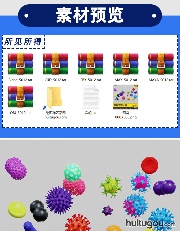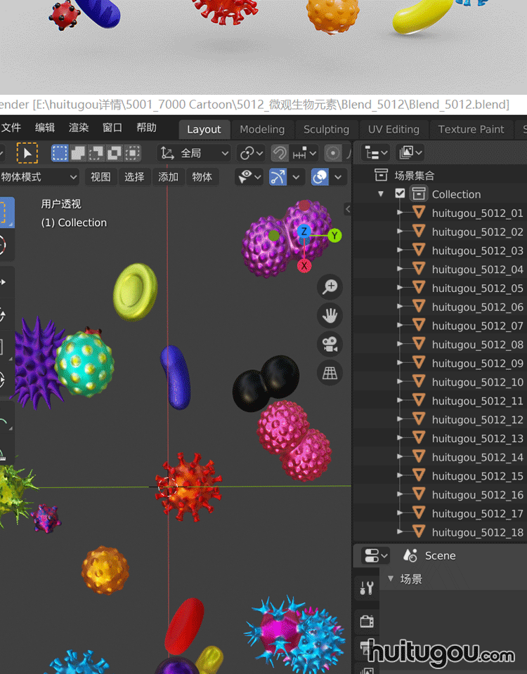 Q版 微生物元素Blender红白细胞细菌病毒杆菌冠状病毒C4D OBJ素材