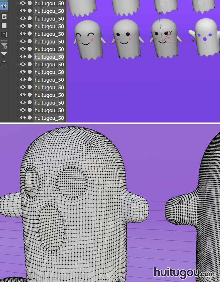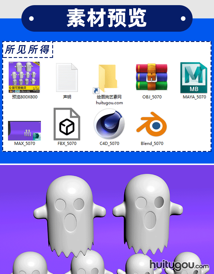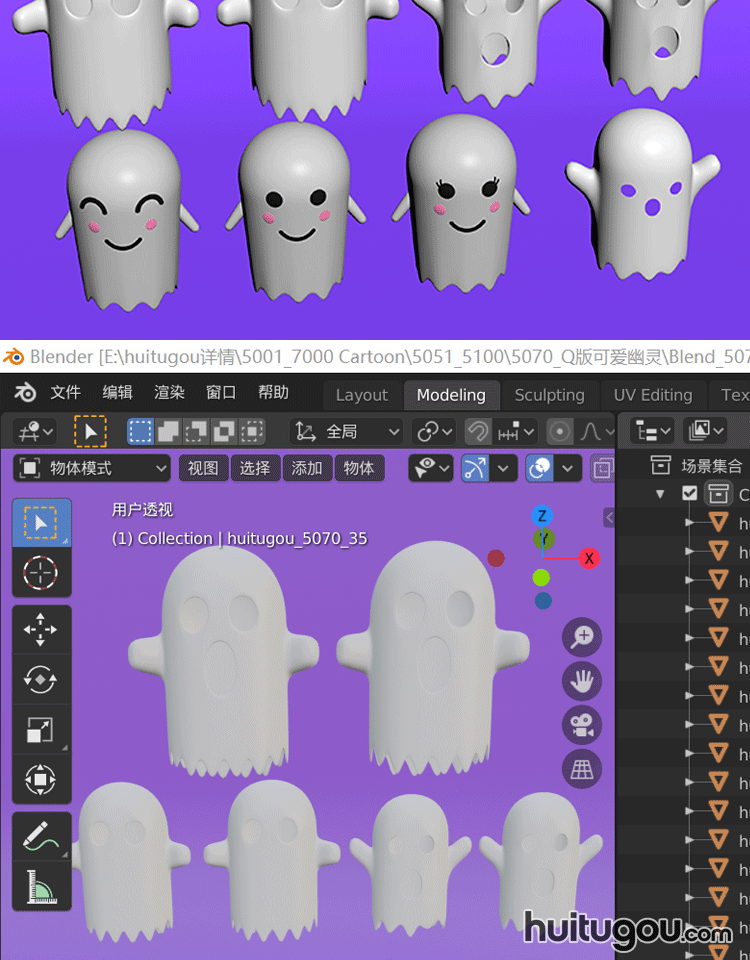 10款 可爱卡通幽灵模型C4D鬼魂魄万圣节Blend FBX OBJ mb MAX素材