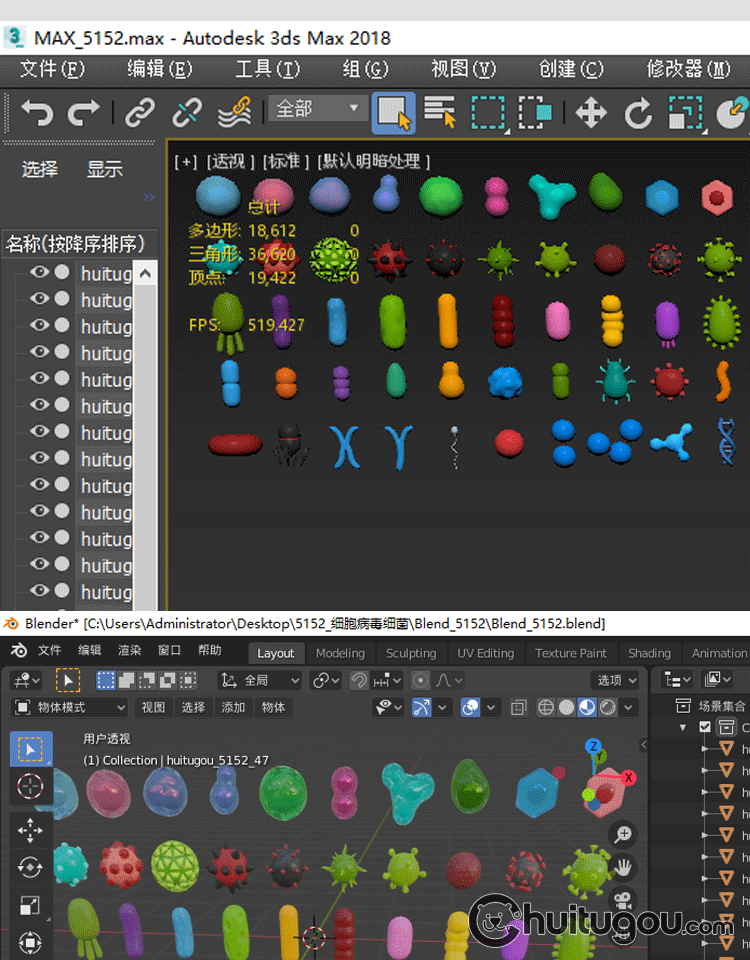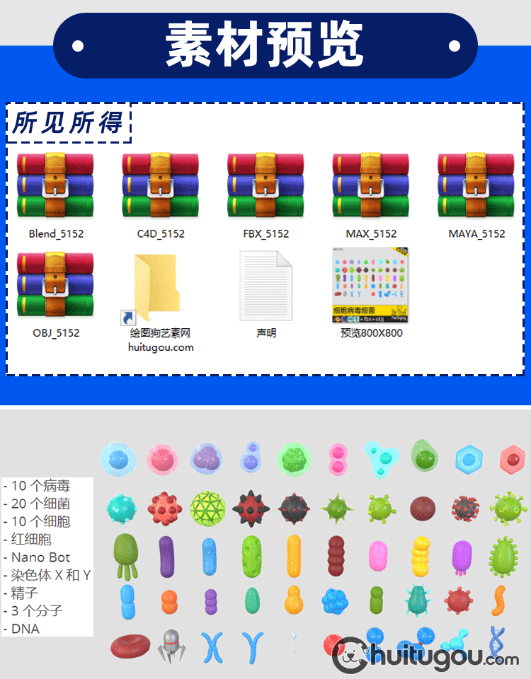 生物学C4D模型3D素材文件Blender病毒细菌FBX红细胞染色体分子OBJ