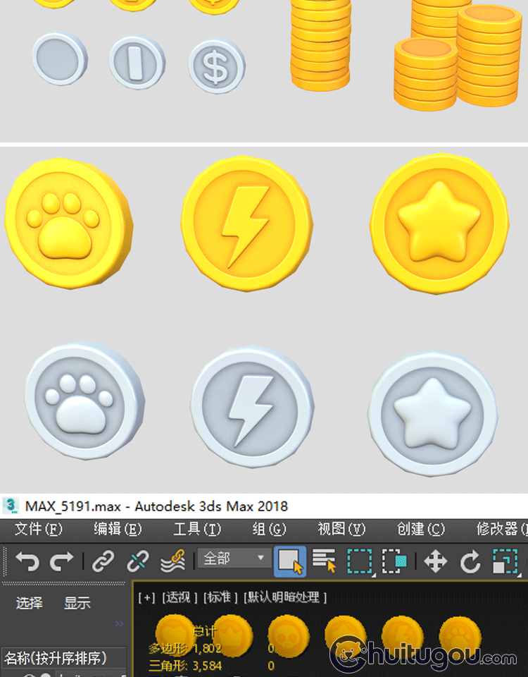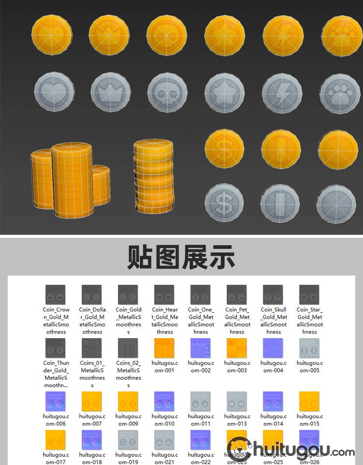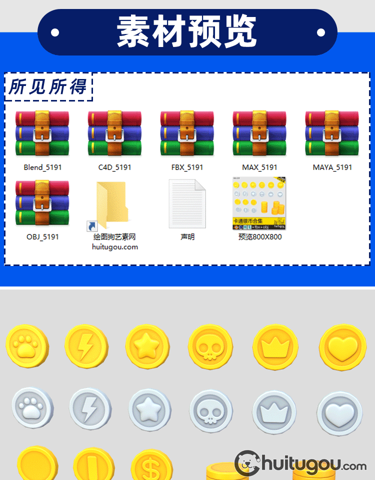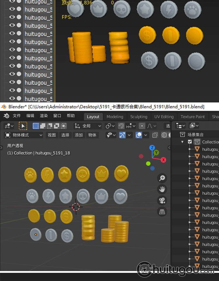 3D卡通金币银币硬币模型C4D游戏奖励包素材Blend格式OBJ素材文件