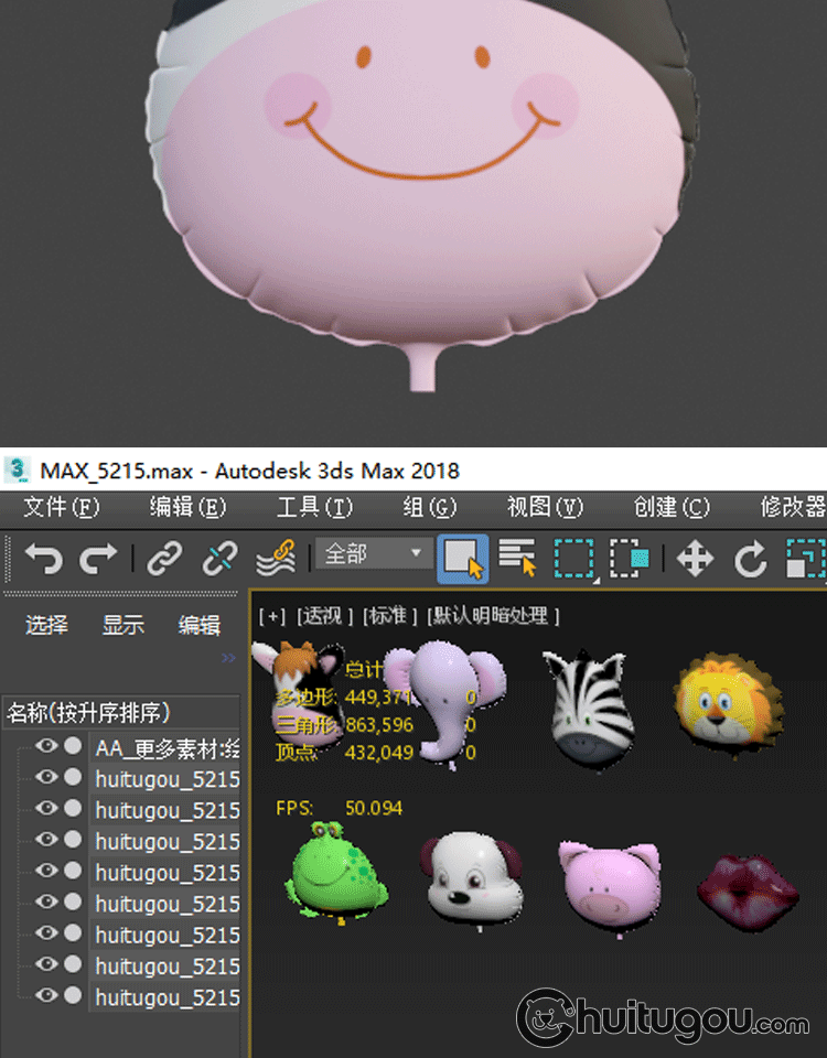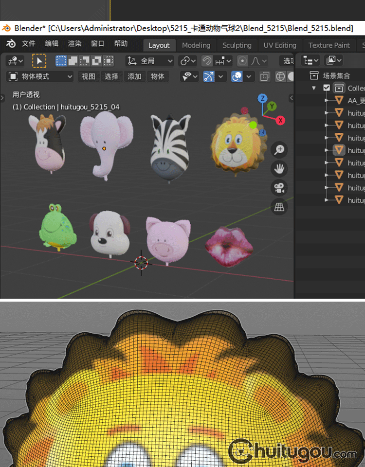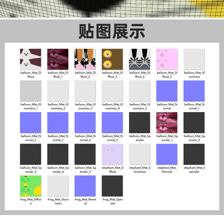 Q版动物造型气球Blend熊猫奶牛青蛙猪红唇斑马狮子C4D三维素材OBJ