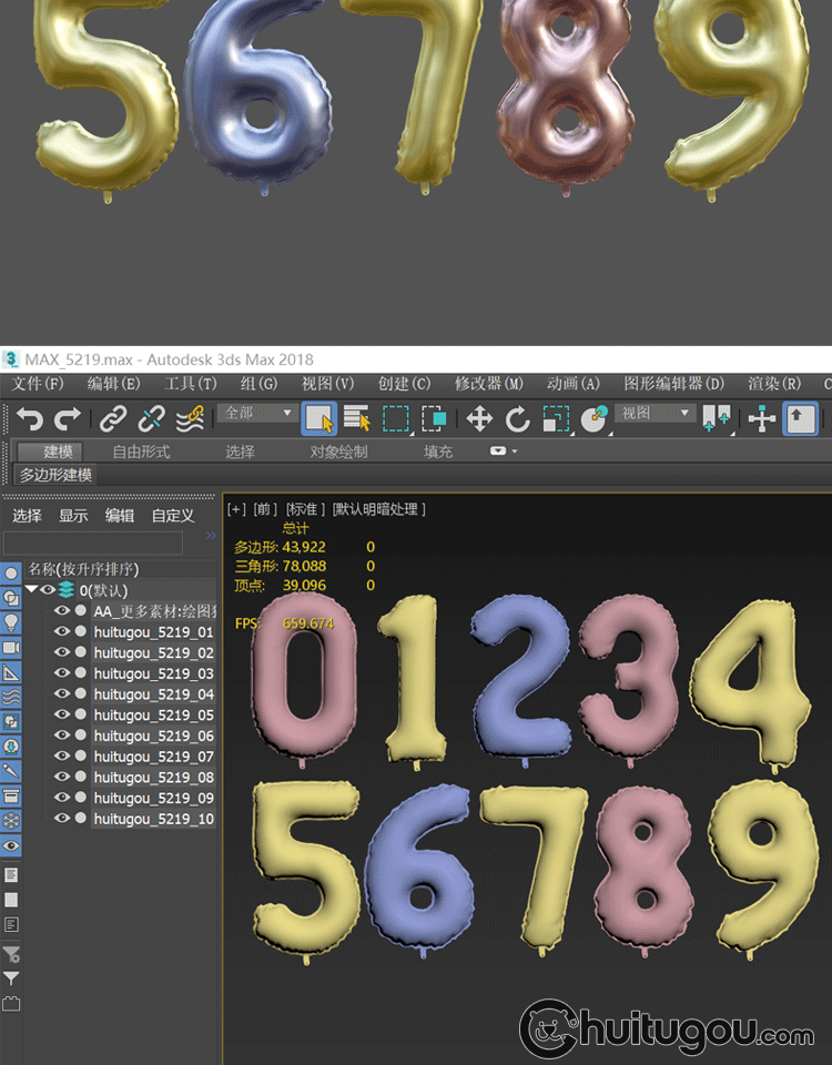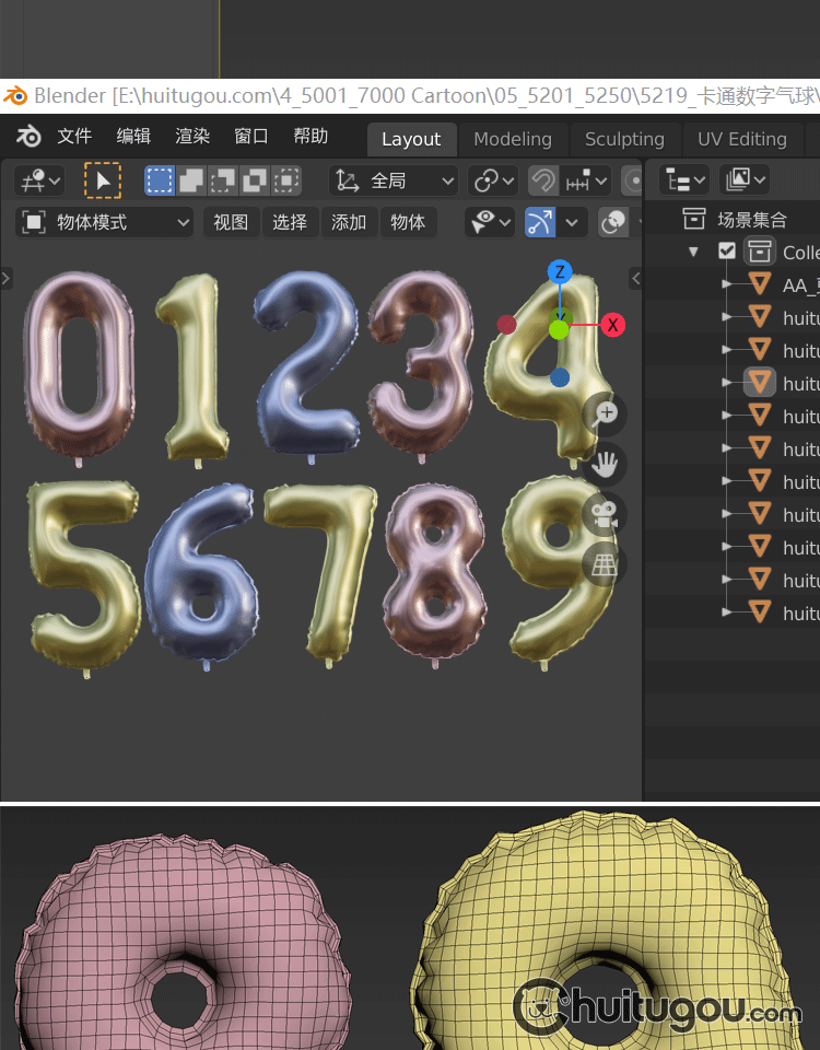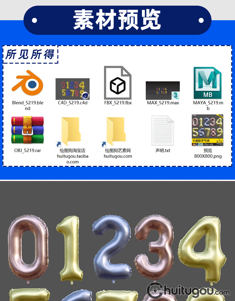 阿拉伯数字模型C4D气球造型字体3D素材Blend卡通节日气氛道具OBJ