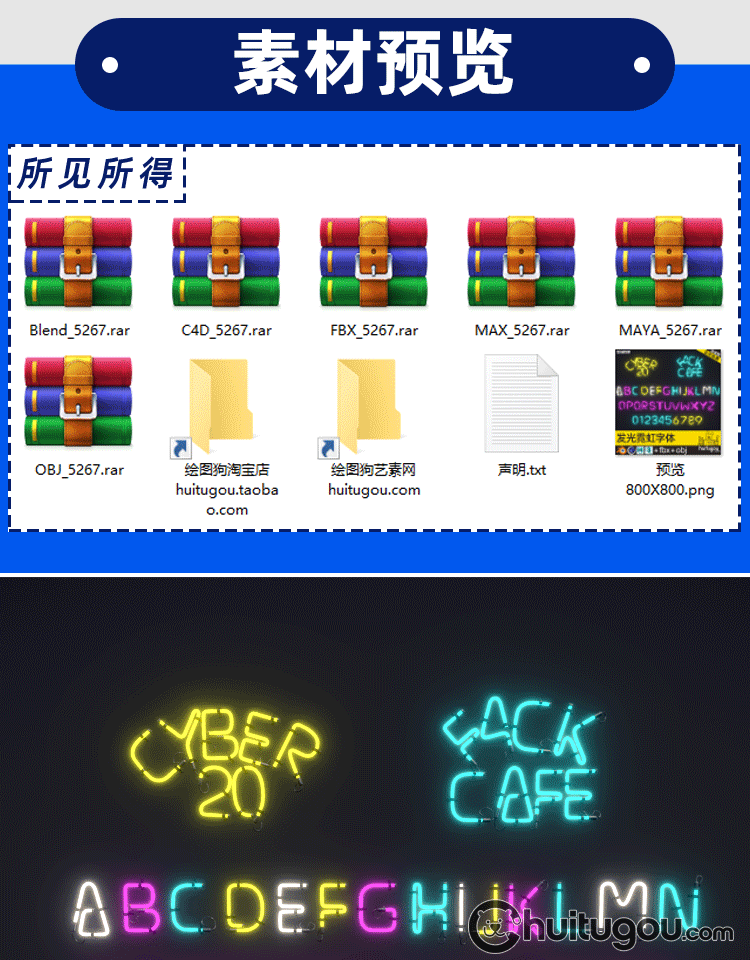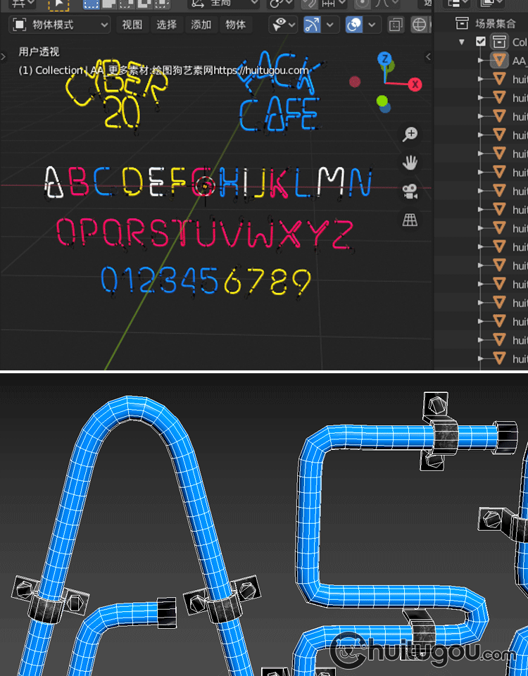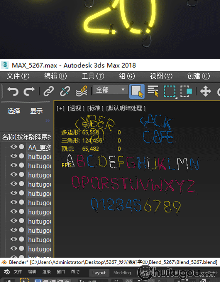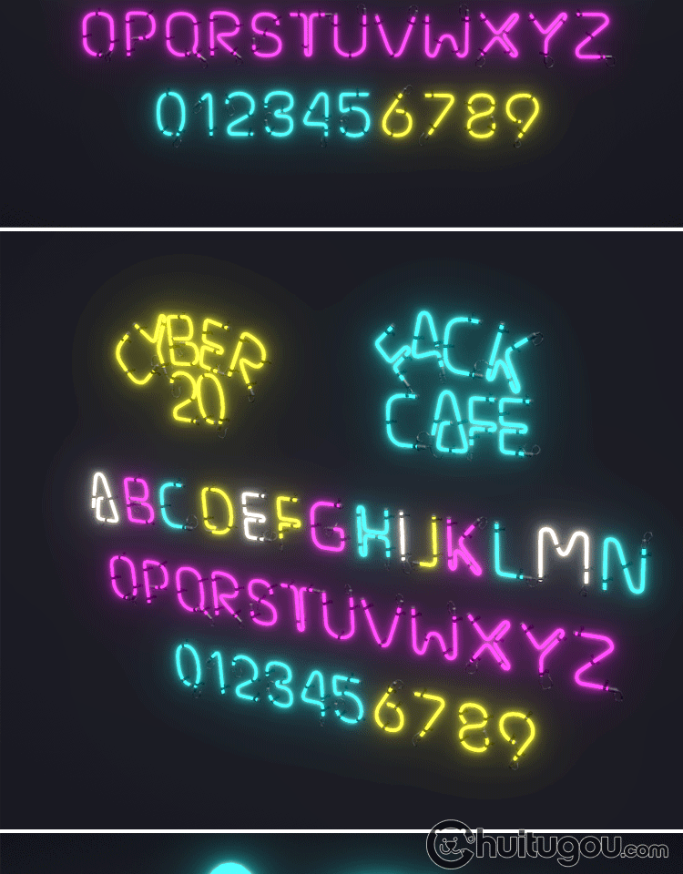 3D字母造型霓虹灯Blender字体模型素材C4D格式OBJ阿拉伯数字MAYA