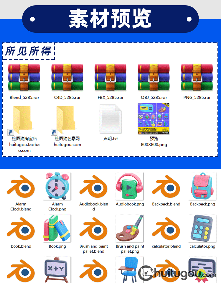 Blender电商购物售后服务png图标3D模型C4D素材FBX格式OBJ源文件