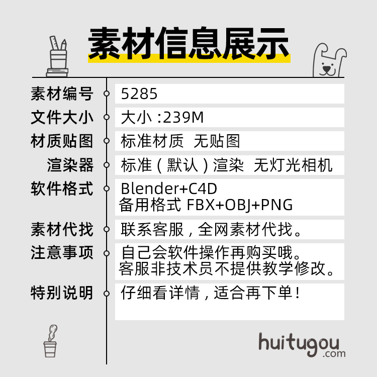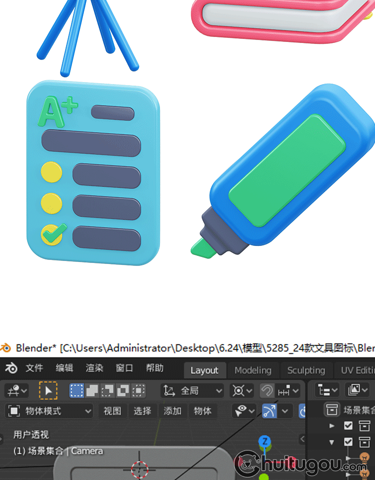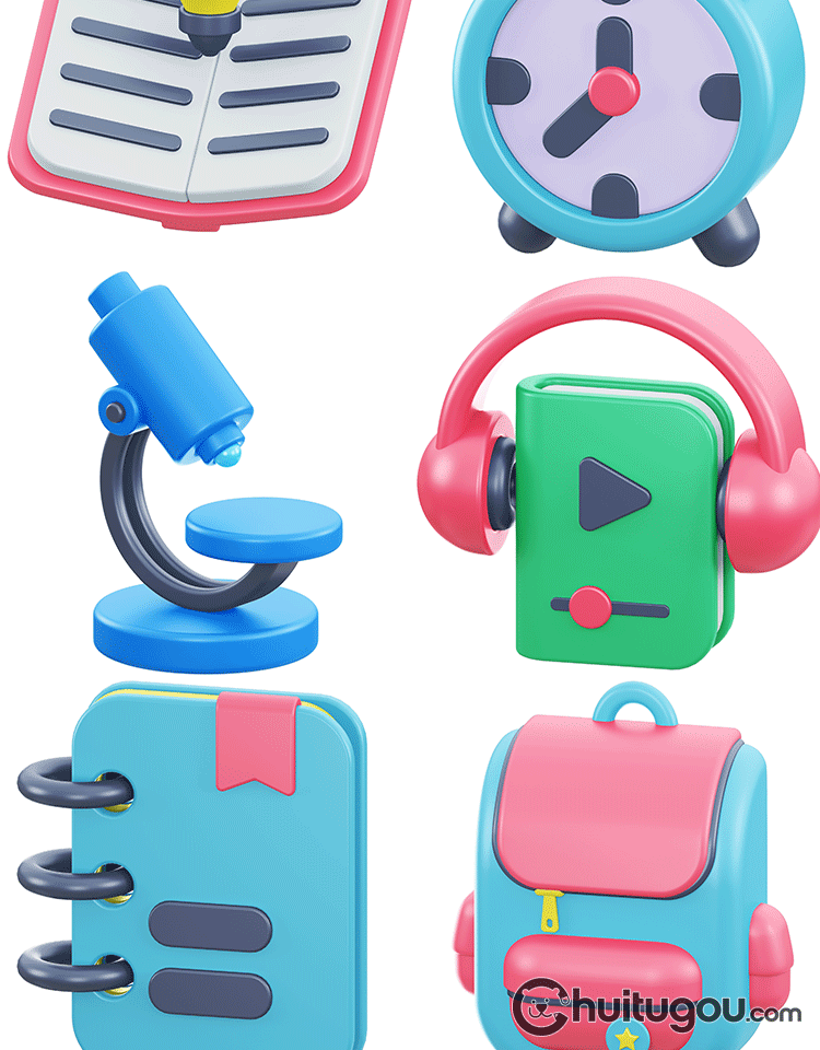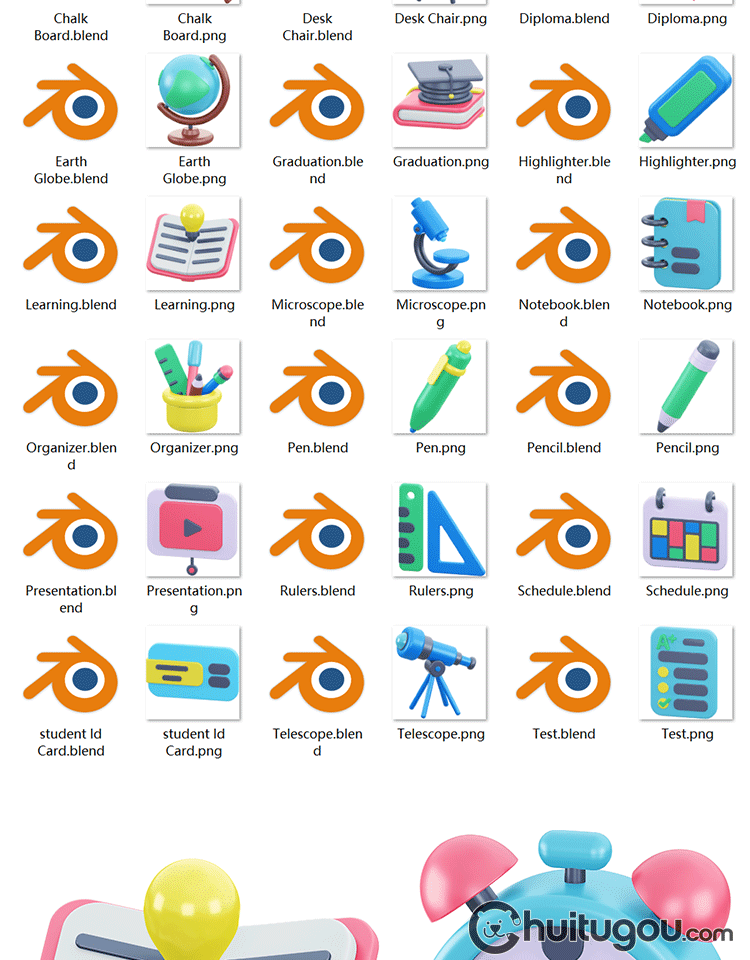 文具图标模型Blend卡通C4D书包笔筒地球仪显微镜计算器附OBJ PNG