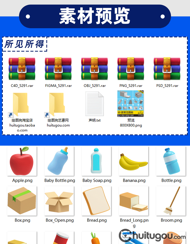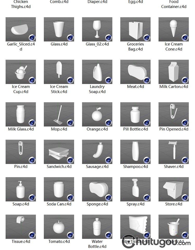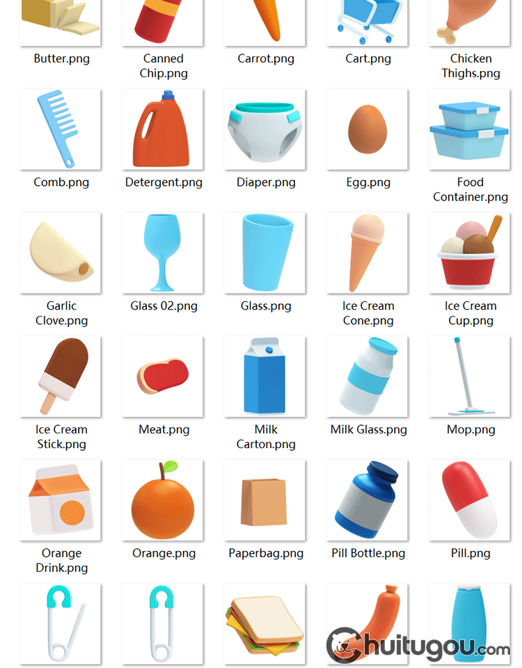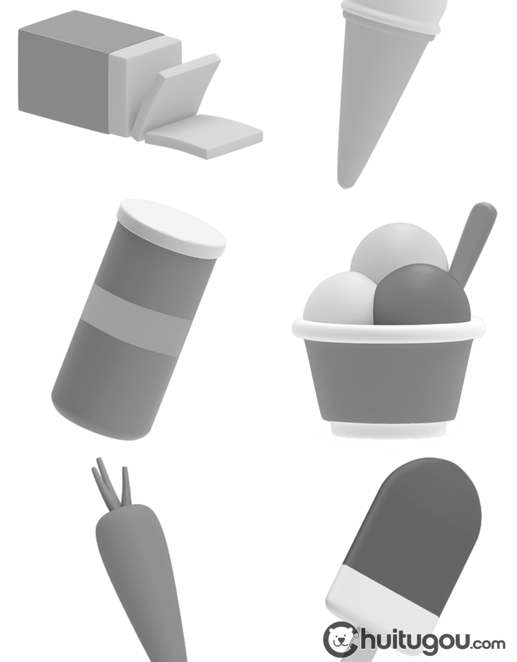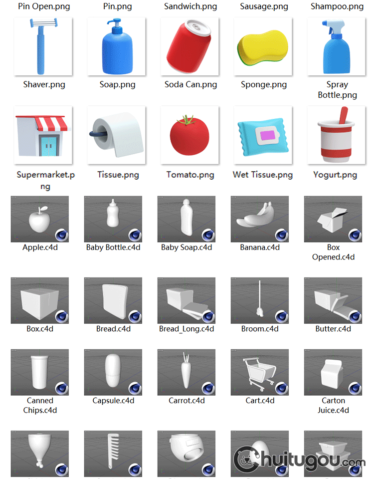 常见图标ICON模型C4D卡通纸盒瓶罐三明治水果杯子3D素材附PSD PNG