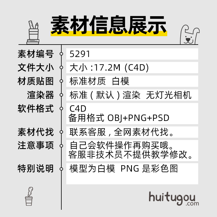 办公图标3D模型C4D卡通可爱台灯铅笔放大镜人物设计素材附PNG OBJ
